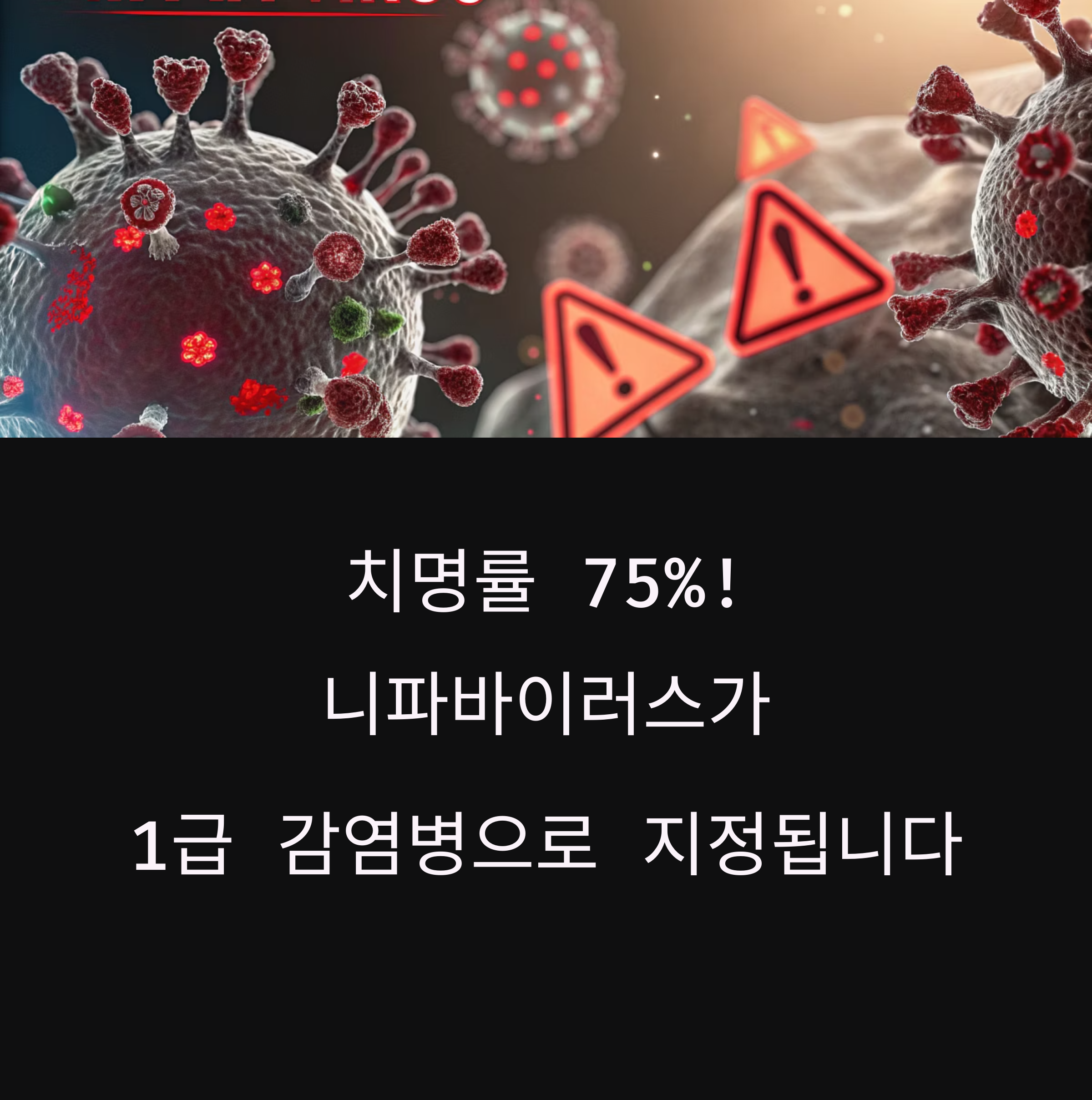 제1급 감염병은 「감염병의 예방 및 관리에 관한 법률」에 따라 생물테러 또는 치명률이 높고 집단 발생 우려가 큰 질환으로 분류됩니다. 음압격리 시설에서의 격리가 의무화되며, 발생 시 즉시 신고해야 합니다. 기존에는 에볼라·탄저·중동호흡기증후군(MERS) 등 17종이 포함되었으나, 니파바이러스가 18번째로 추가되었습니다. 이는 2023~2024년 인도와 방글라데시에서의 집단 발병이 확산 추세를 보인 데 따른 선제적 방역 조치입니다.