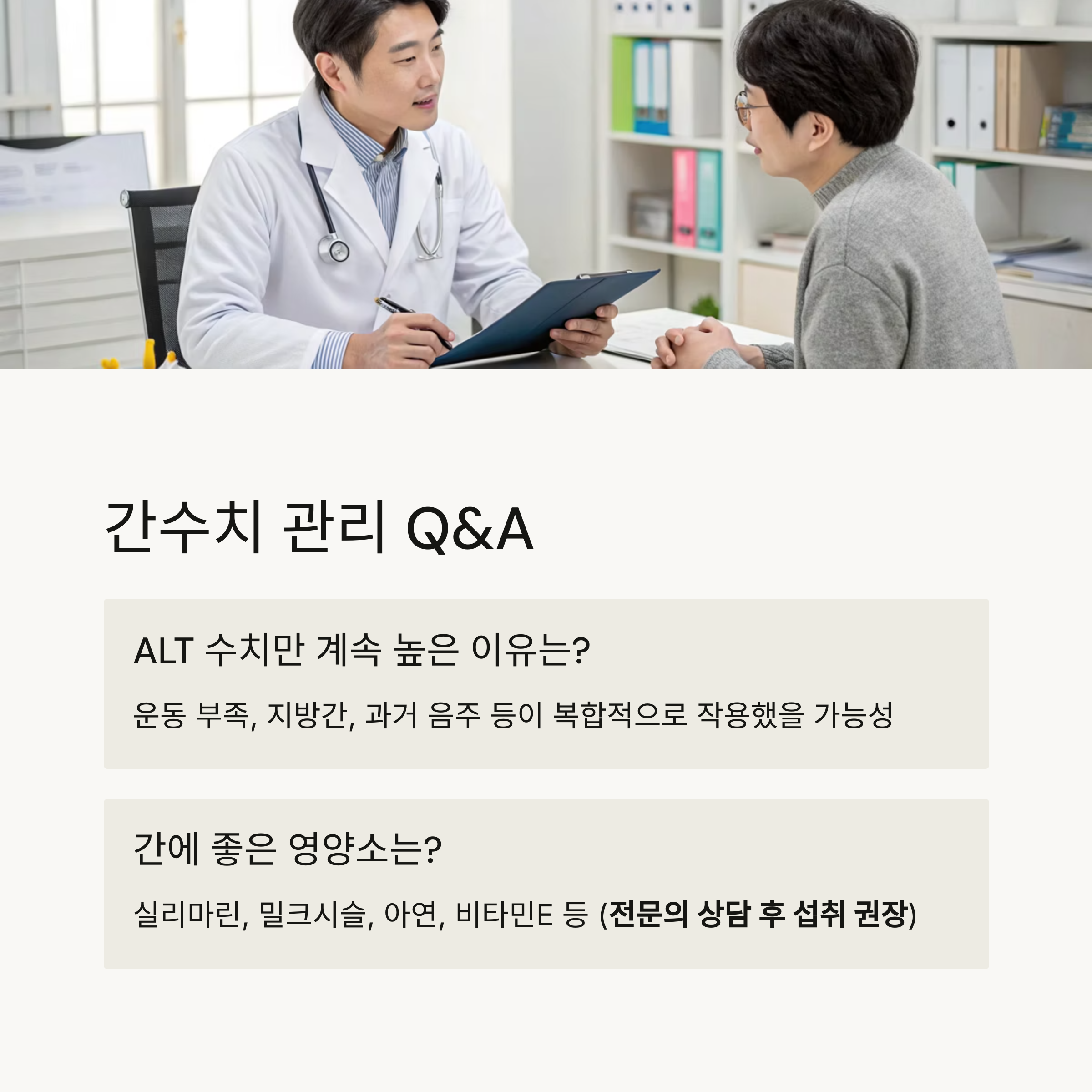 Q. "매년 건강검진에서 ALT 수치만 계속 높게 나옵니다. 원인은 뭘까요?"