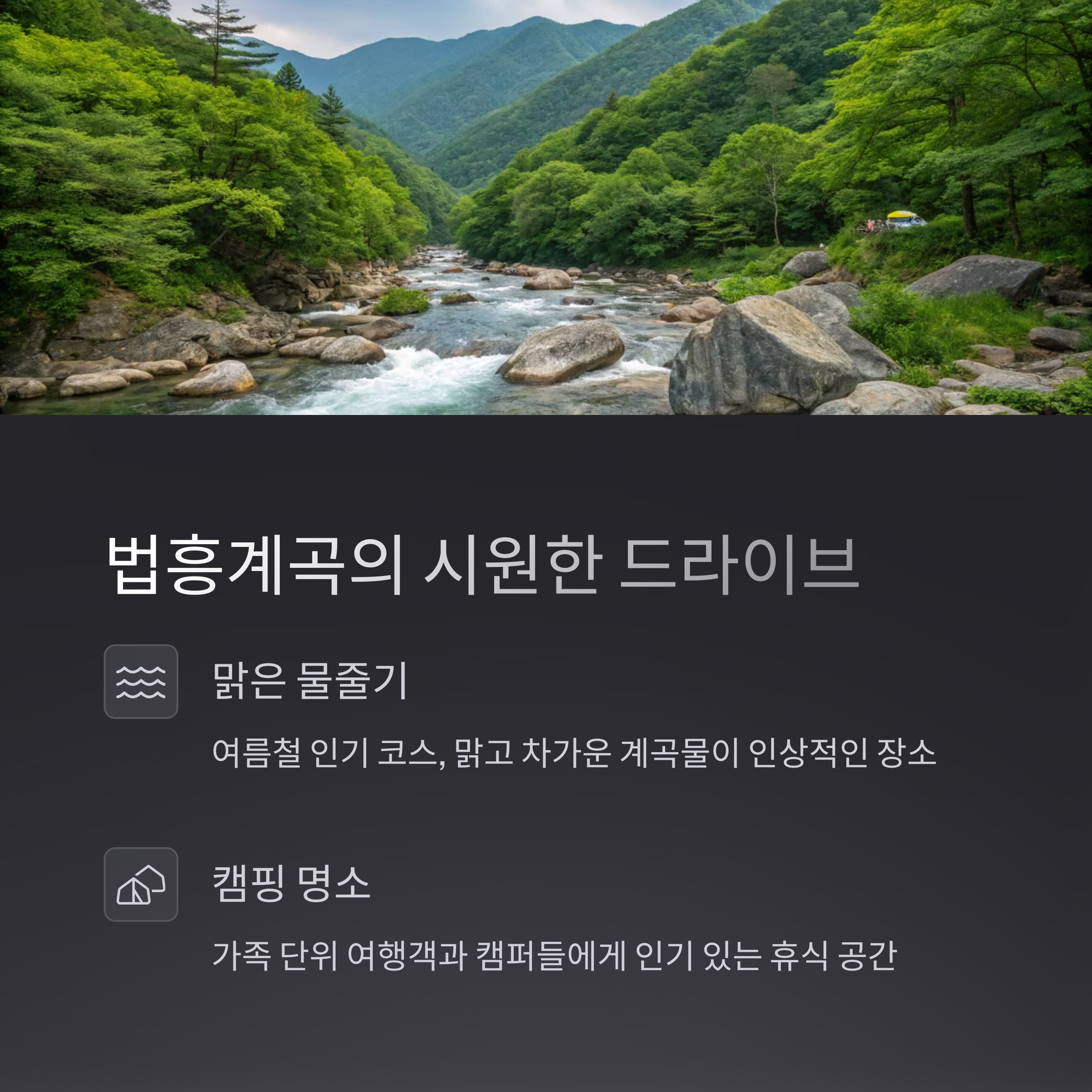 감성 캠핑족 필수! "법흥계곡"으로 이어지는 시나리오