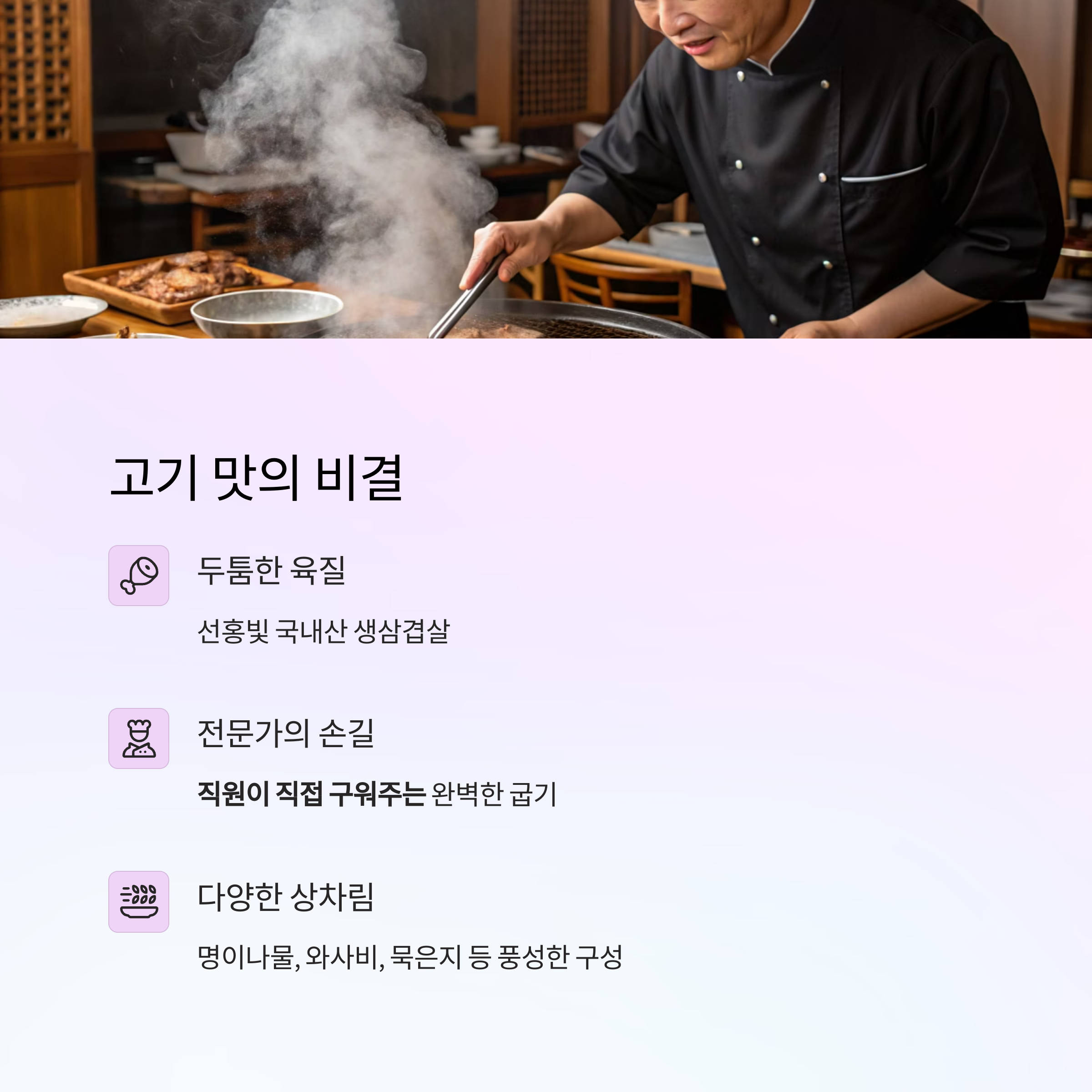 "진짜 고기의 맛은 구워주는 사람 손끝에서 나온다"는 말처럼,