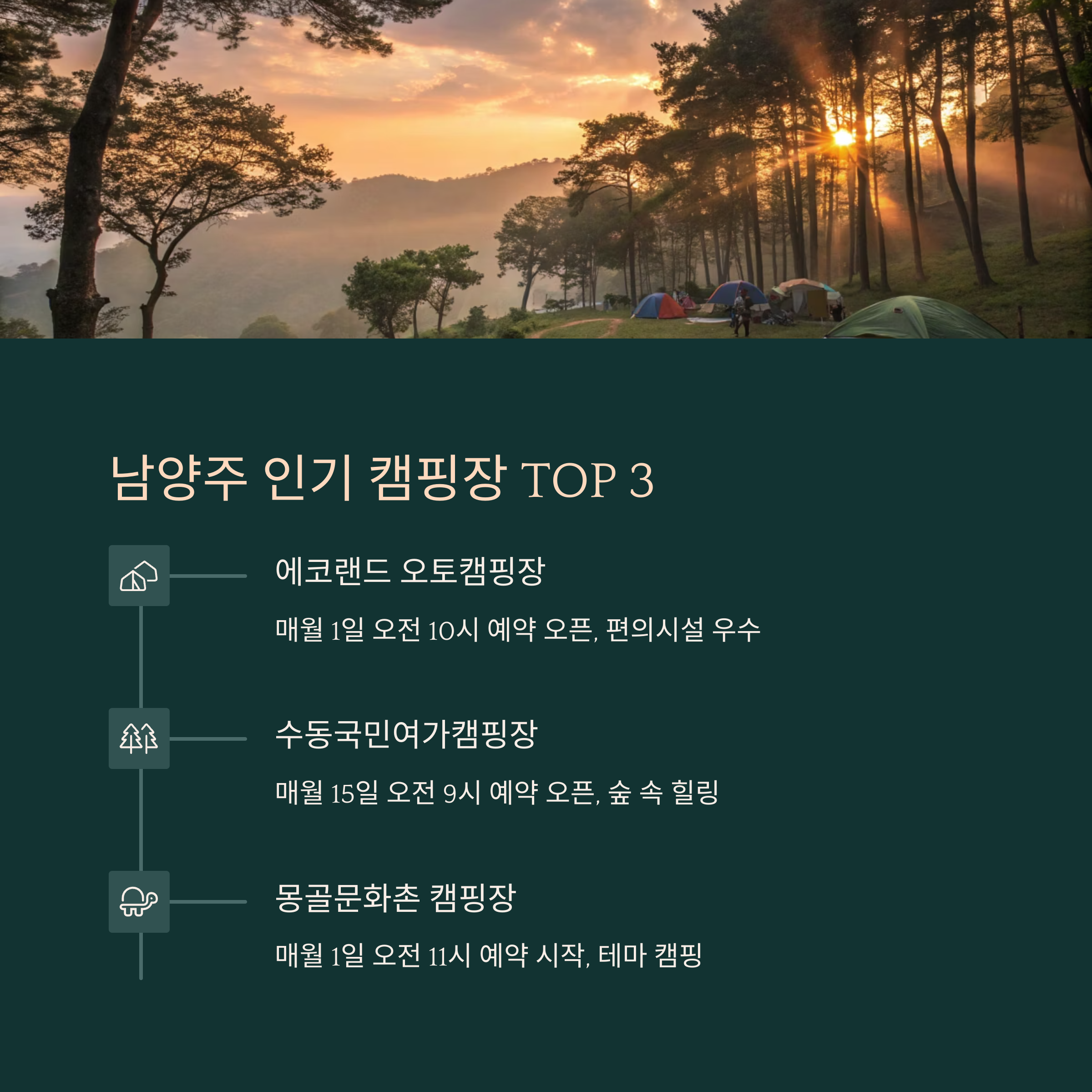 3. 남양주 인기 캠핑장 TOP 3와 예약 시간 정리