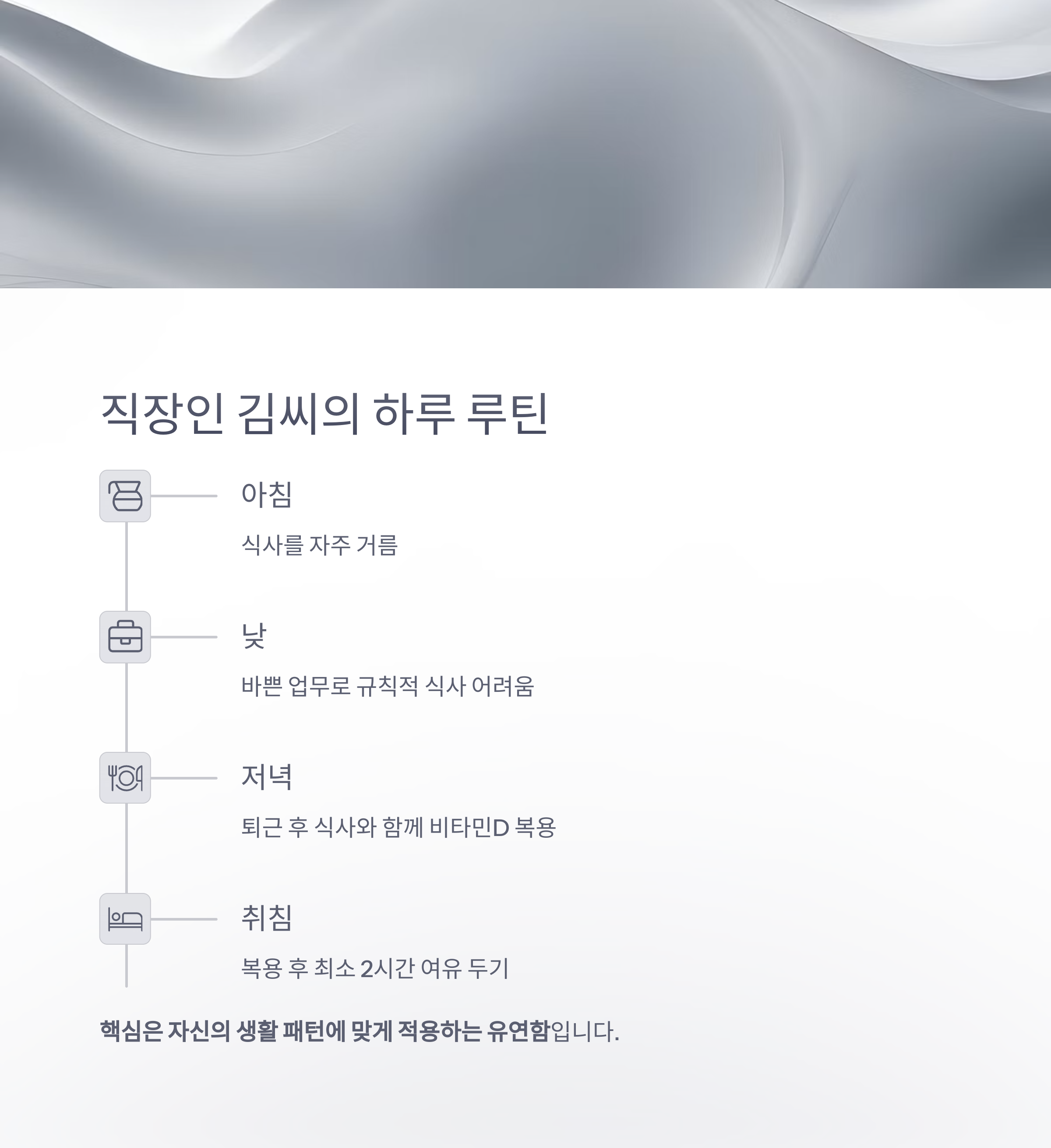 핵심은 자신의 생활 패턴에 맞게 적용하는 유연함입니다.
