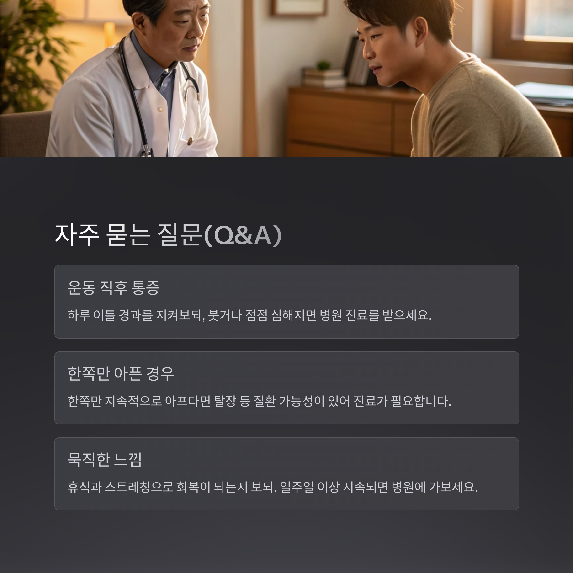 운동 부상 관점과 질환 가능성을 모두 고려하여 상세히 안내드립니다.