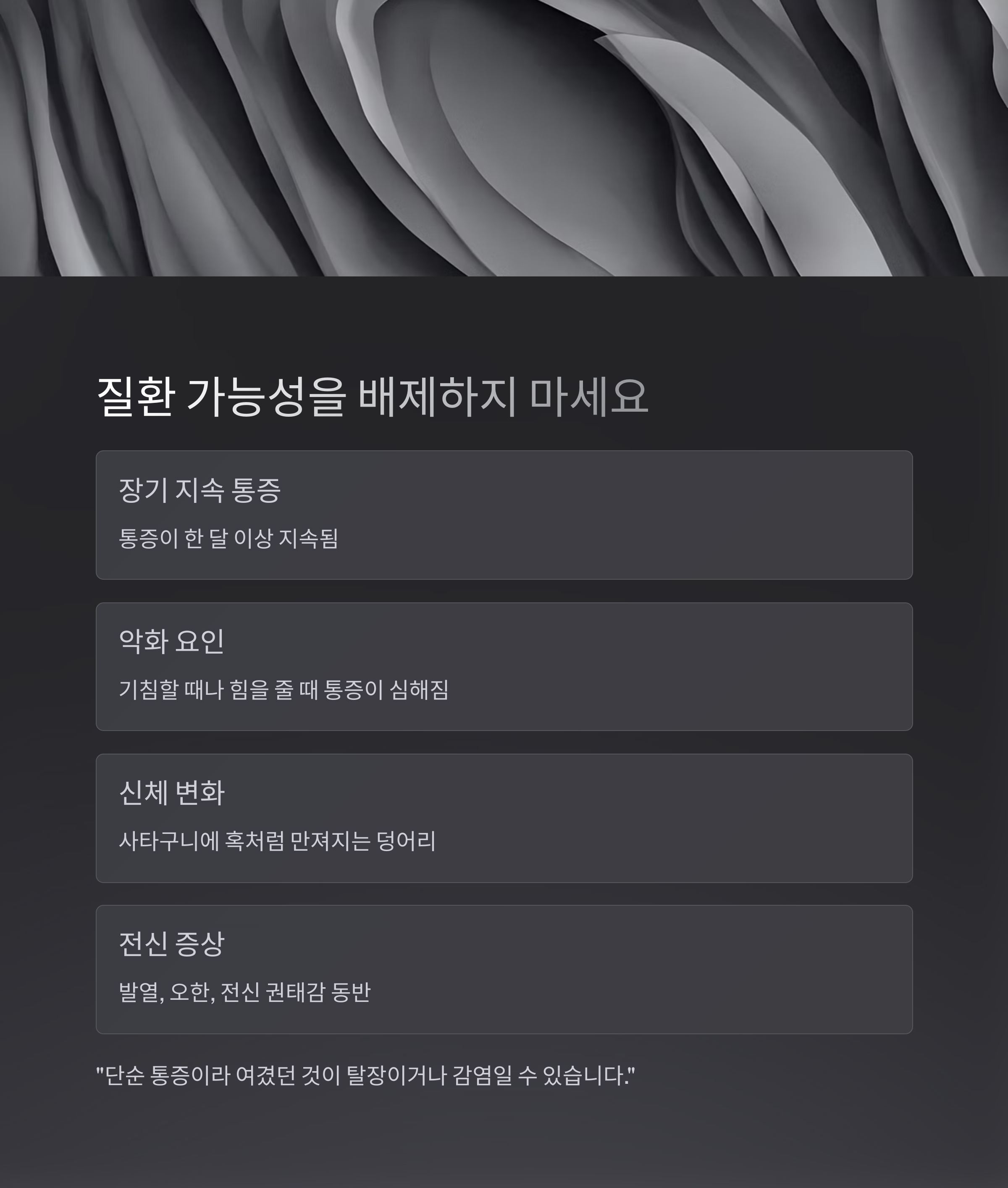 시간이 지나도 통증 원인이 불분명하거나 일상생활에 영향을 준다면