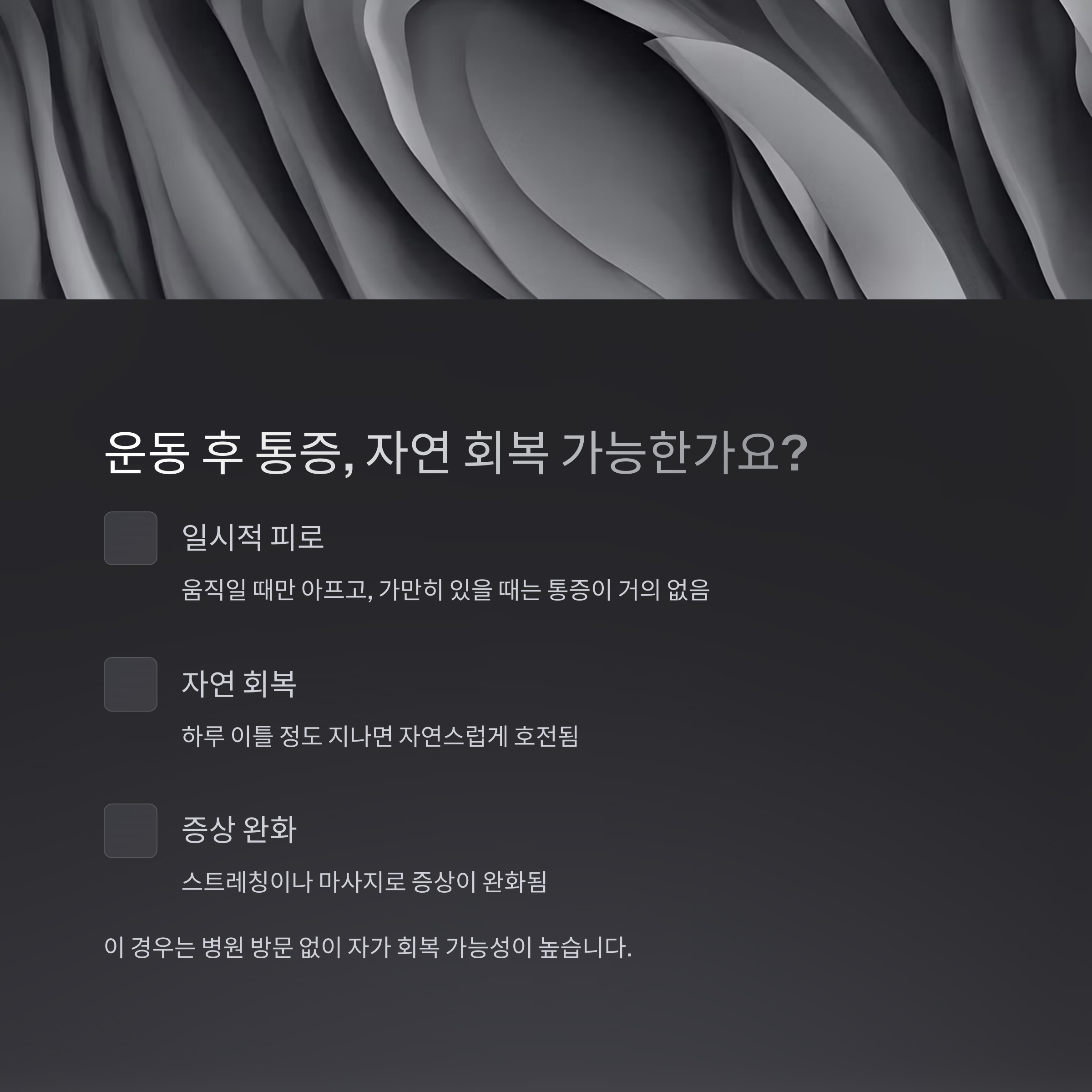 운동 후 발생한 통증, 휴식으로 회복된다면?