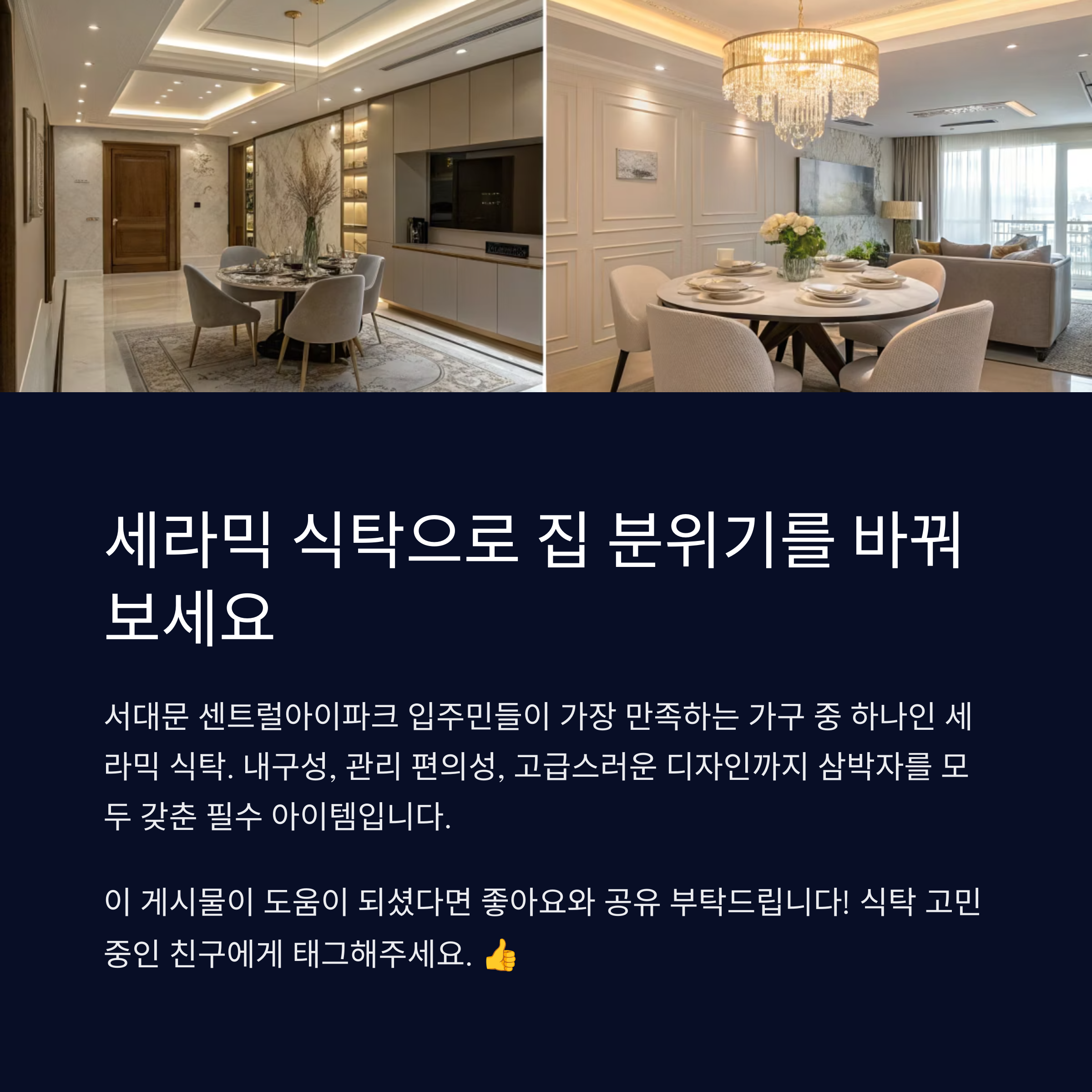 “식탁 하나 바꿨을 뿐인데 집 분위기가 확 달라졌어요!” 입주민이 말하는 세라믹 식탁 선택 이유