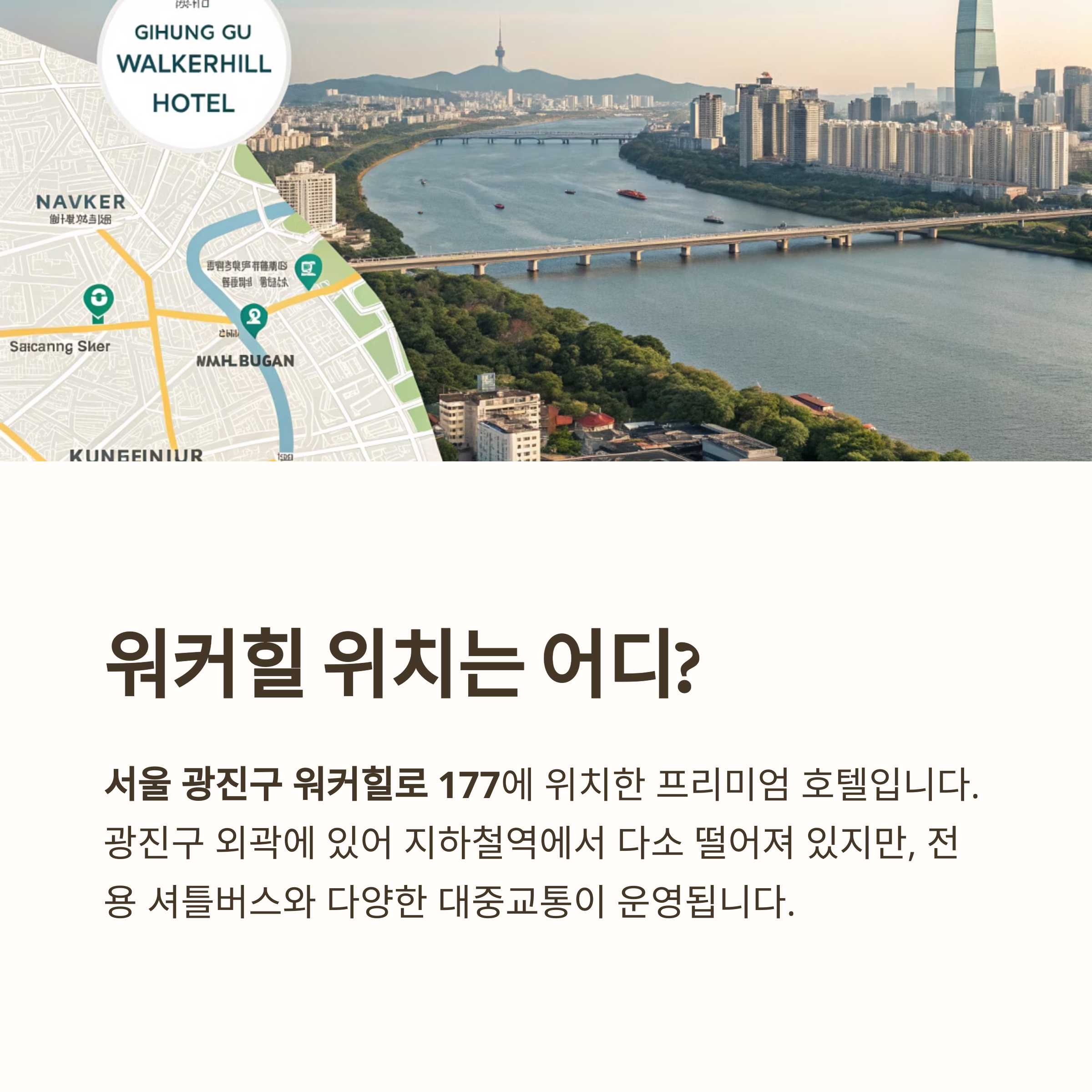- 워커힐 셔틀버스 탑승 후 호텔 도착 (약 15분)