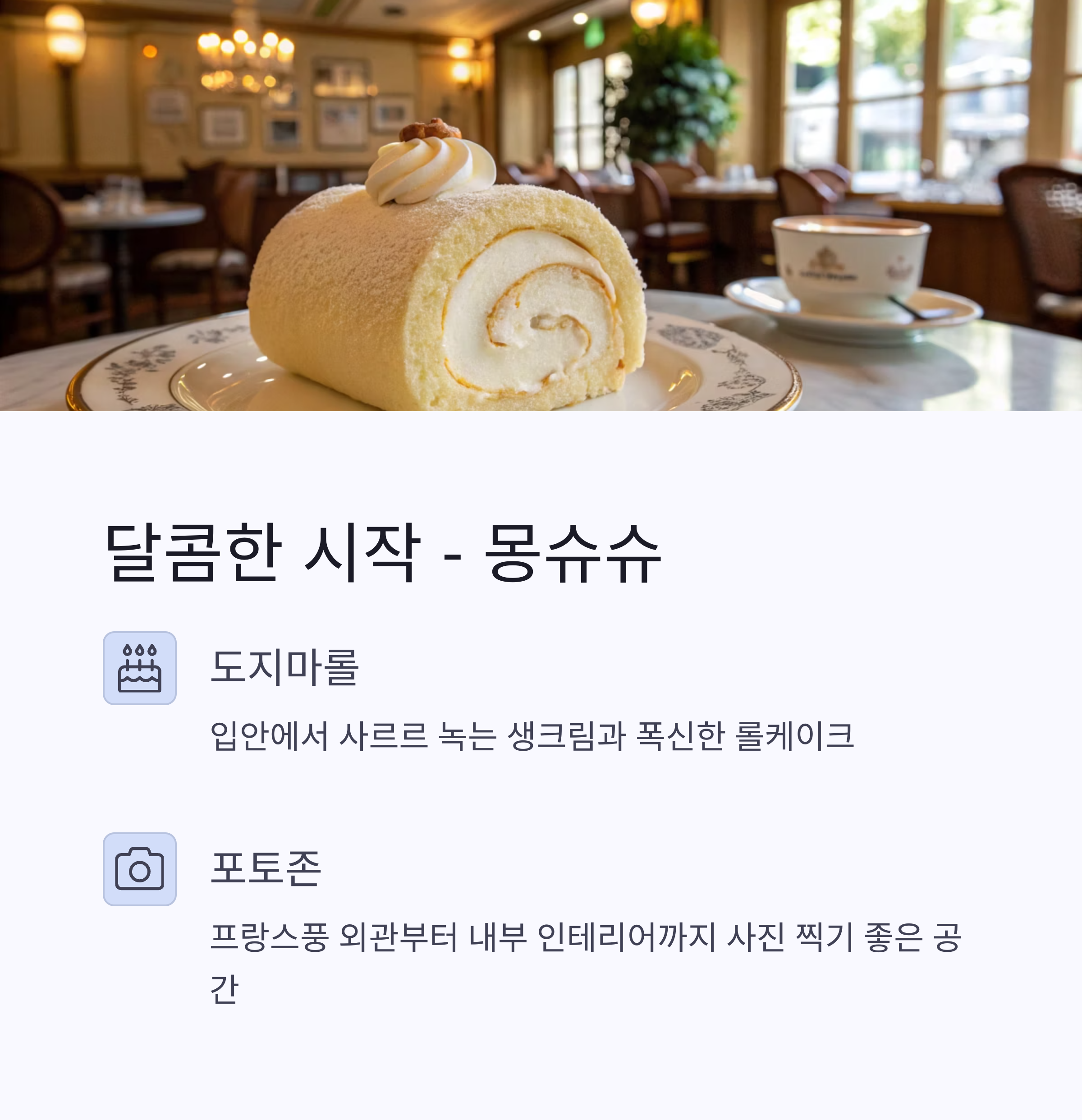 여행의 시작을 달콤하게 열고 싶다면 몽슈슈가 정답입니다.