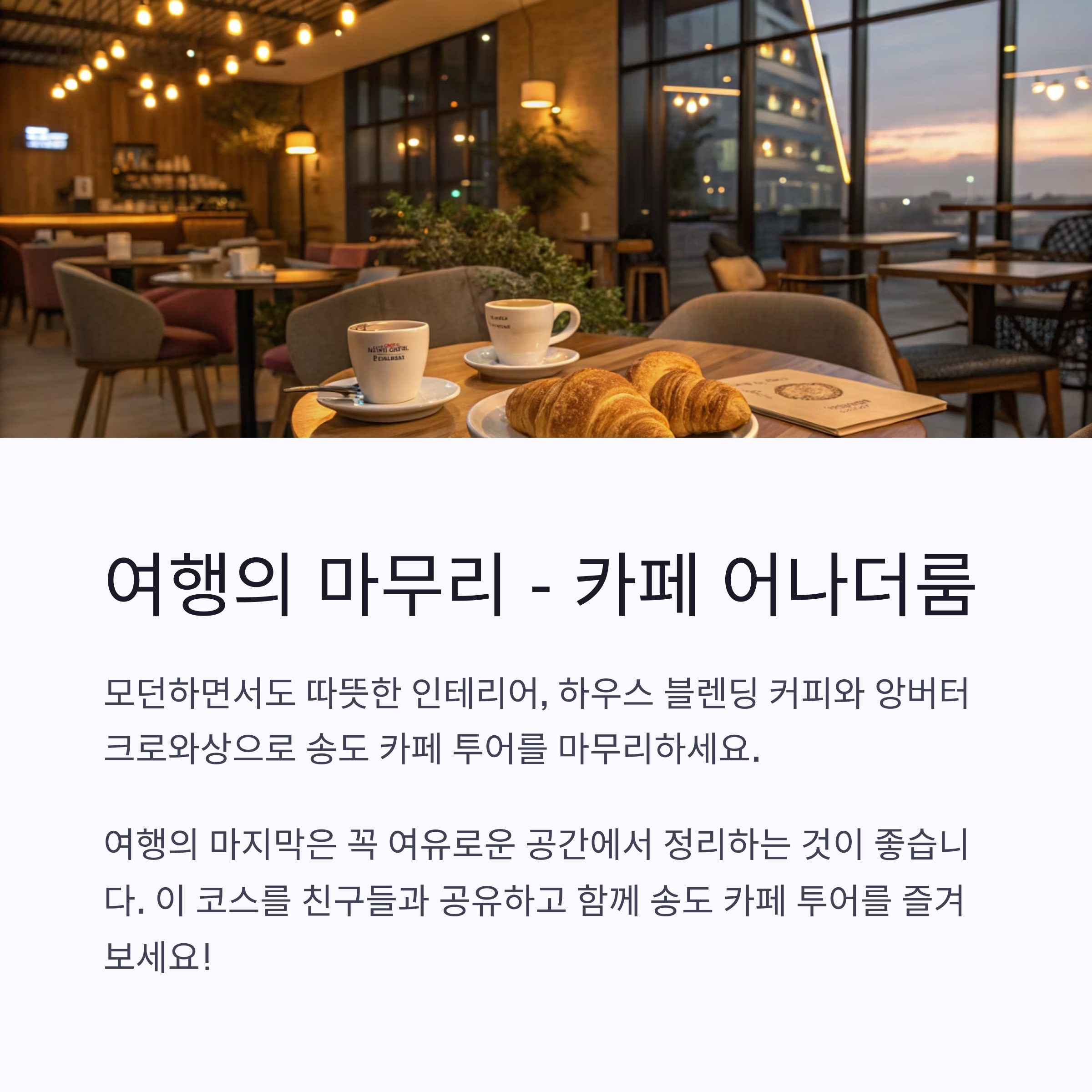“여행의 마지막은 꼭 여유로운 공간에서 마무리하세요.”