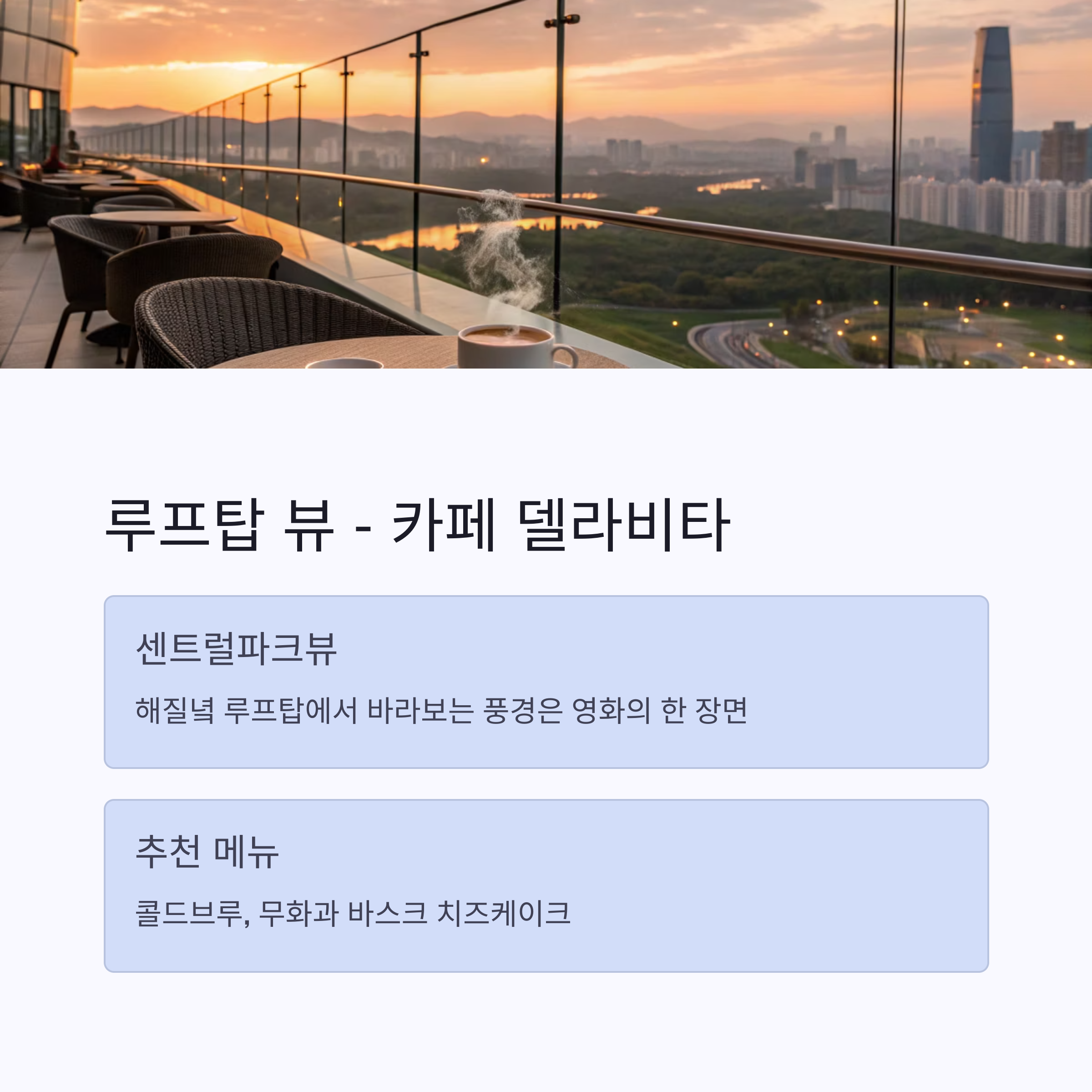 - 내부보다 루프탑이 메인, 날씨 좋은 날 강력 추천