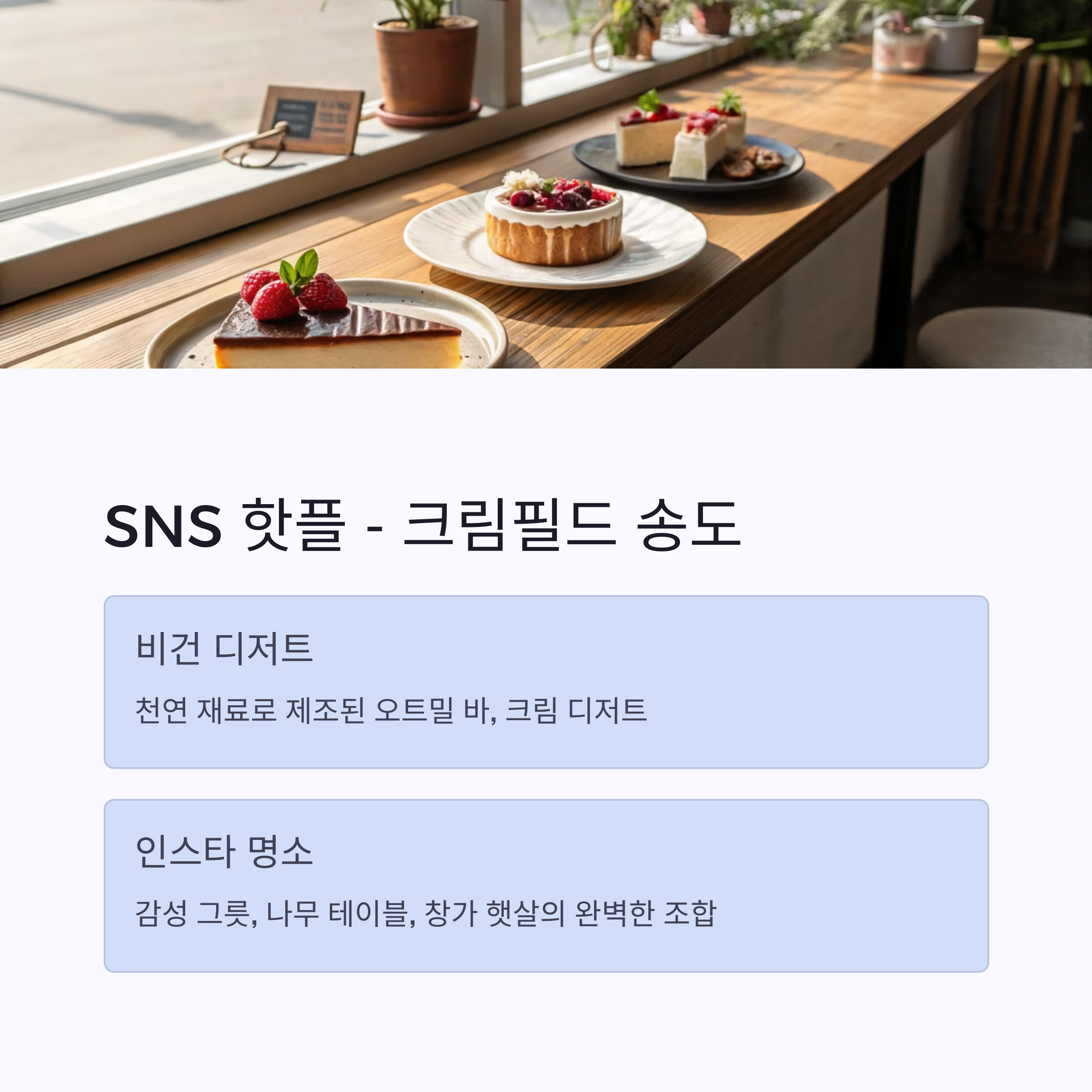 - 모든 디저트는 천연 재료로 제조
