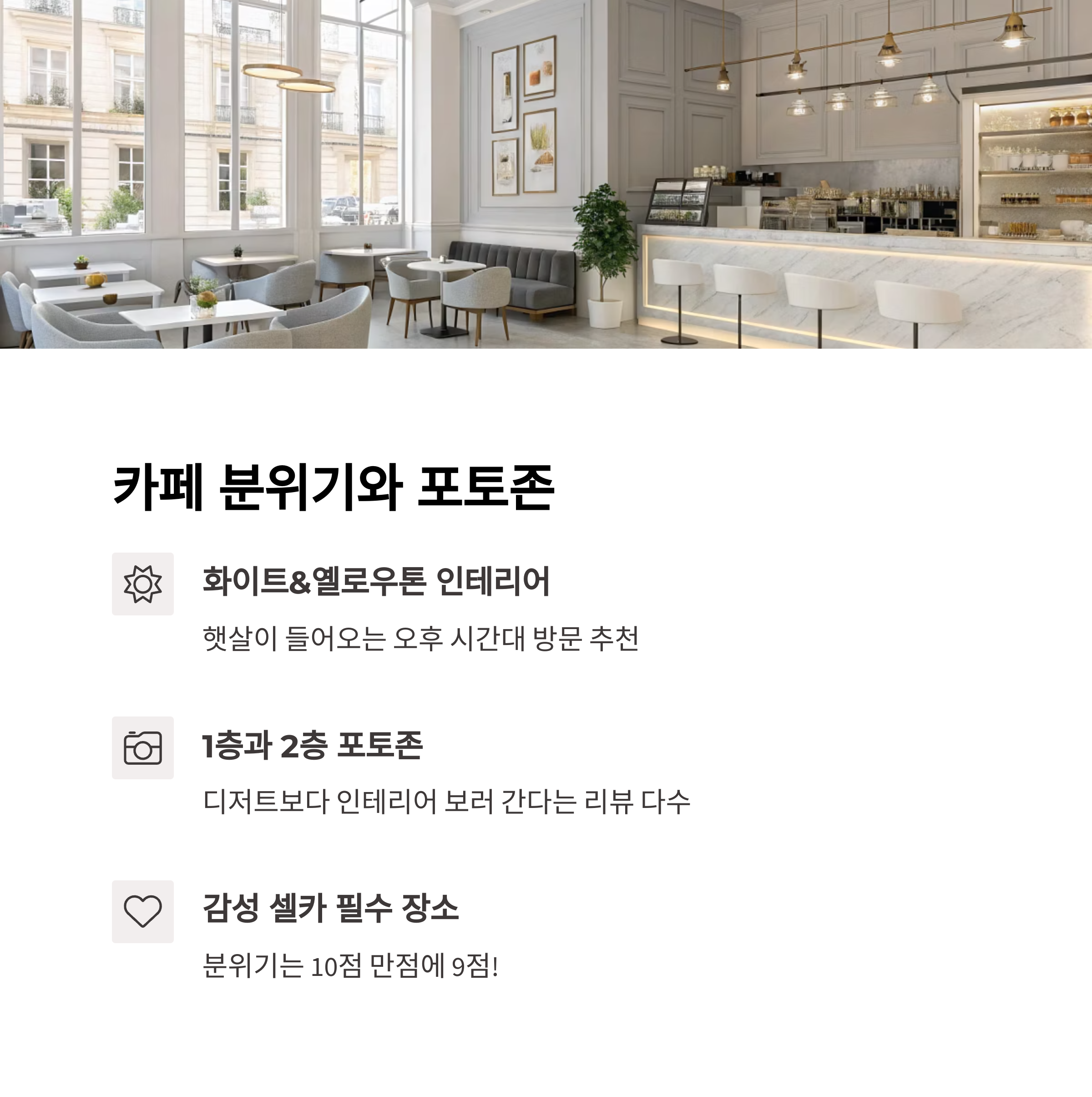 • 감성 중심이라 디저트만 기대하고 가면 실망할 수도 있음