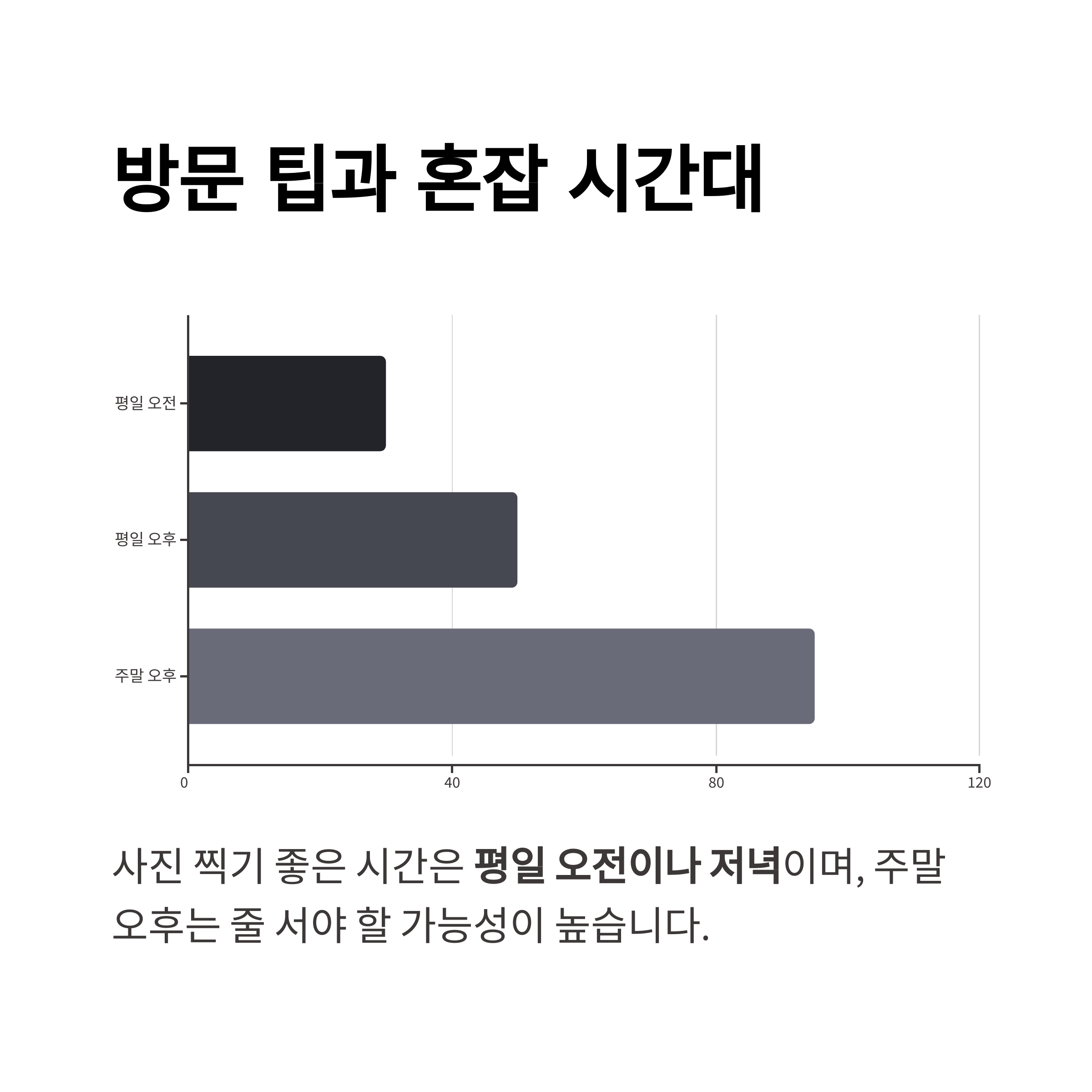 • 사진 찍기 좋은 시간은 평일 오전 or 저녁