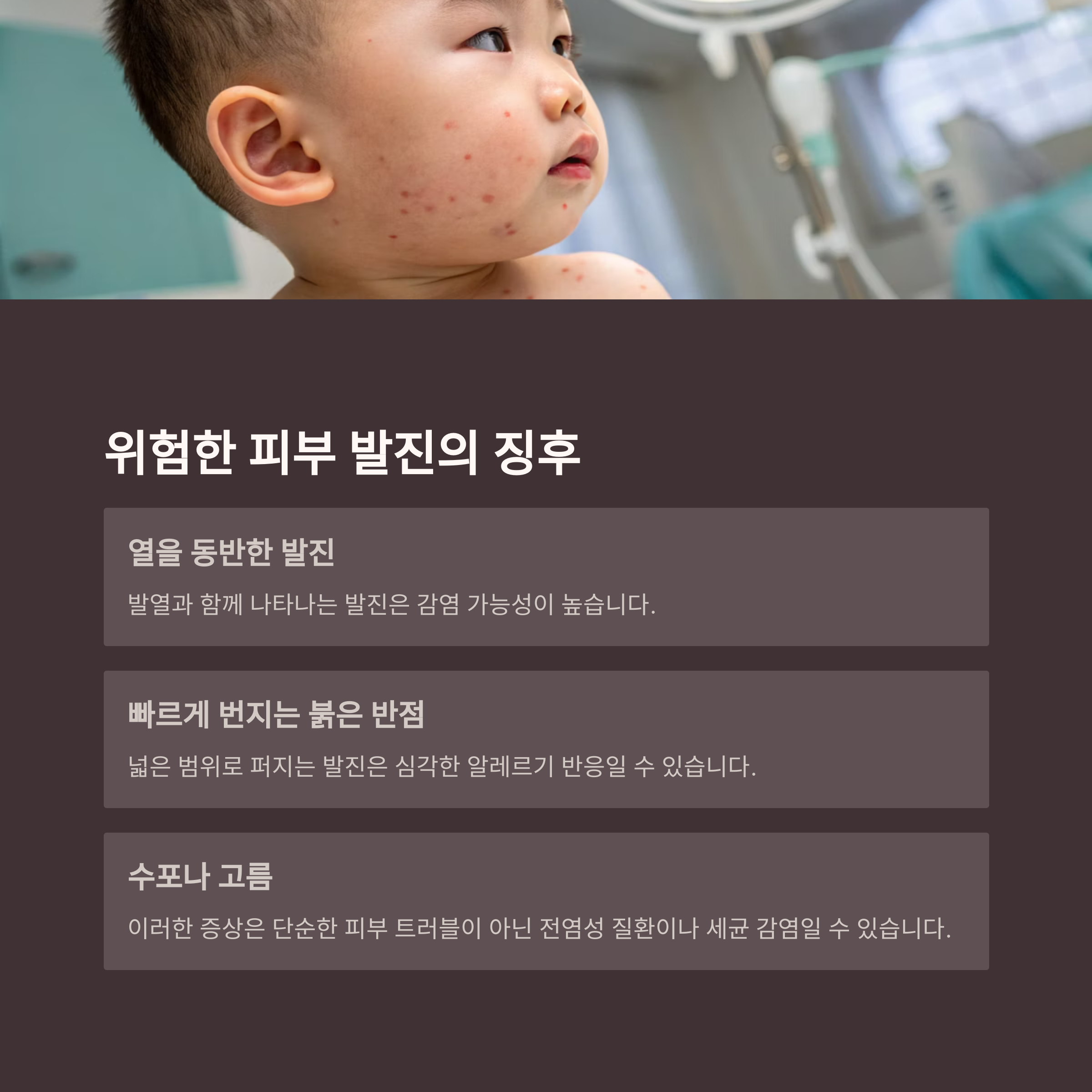 지속되는 발진이나 심한 증상은 반드시 진료가 필요합니다.