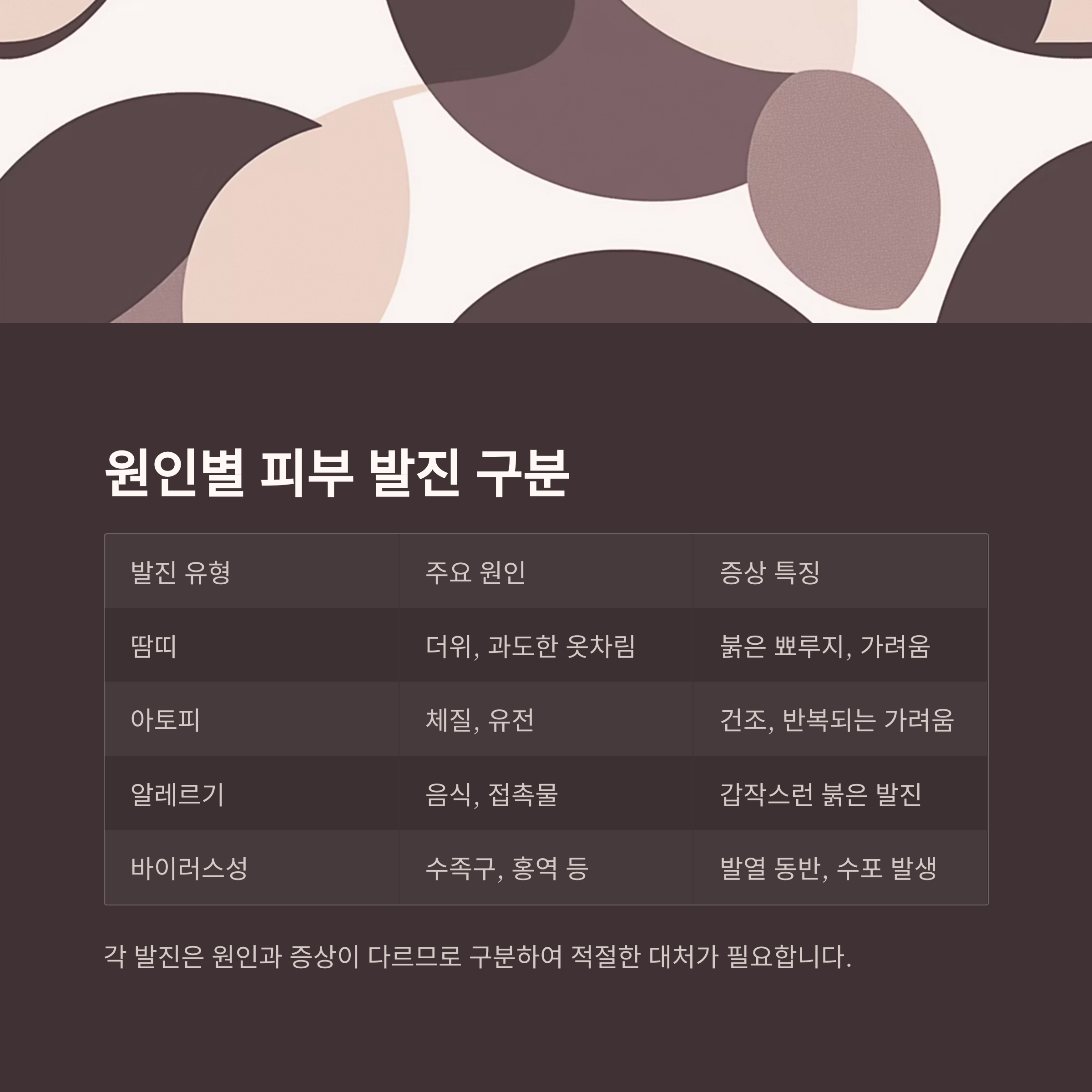 원인별 피부 발진 구분 표