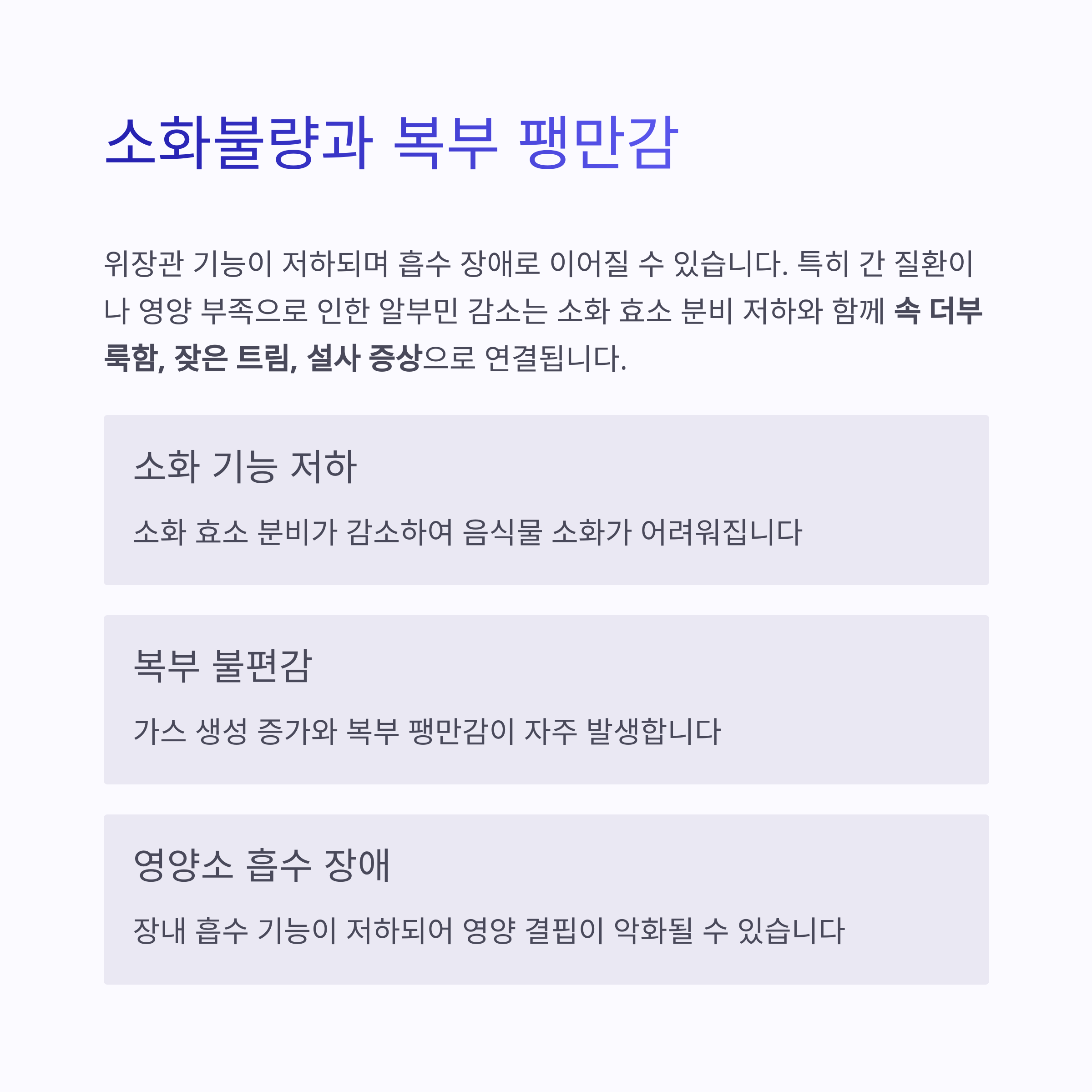 특히 간 질환이나 영양 부족으로 인한 알부민 감소는