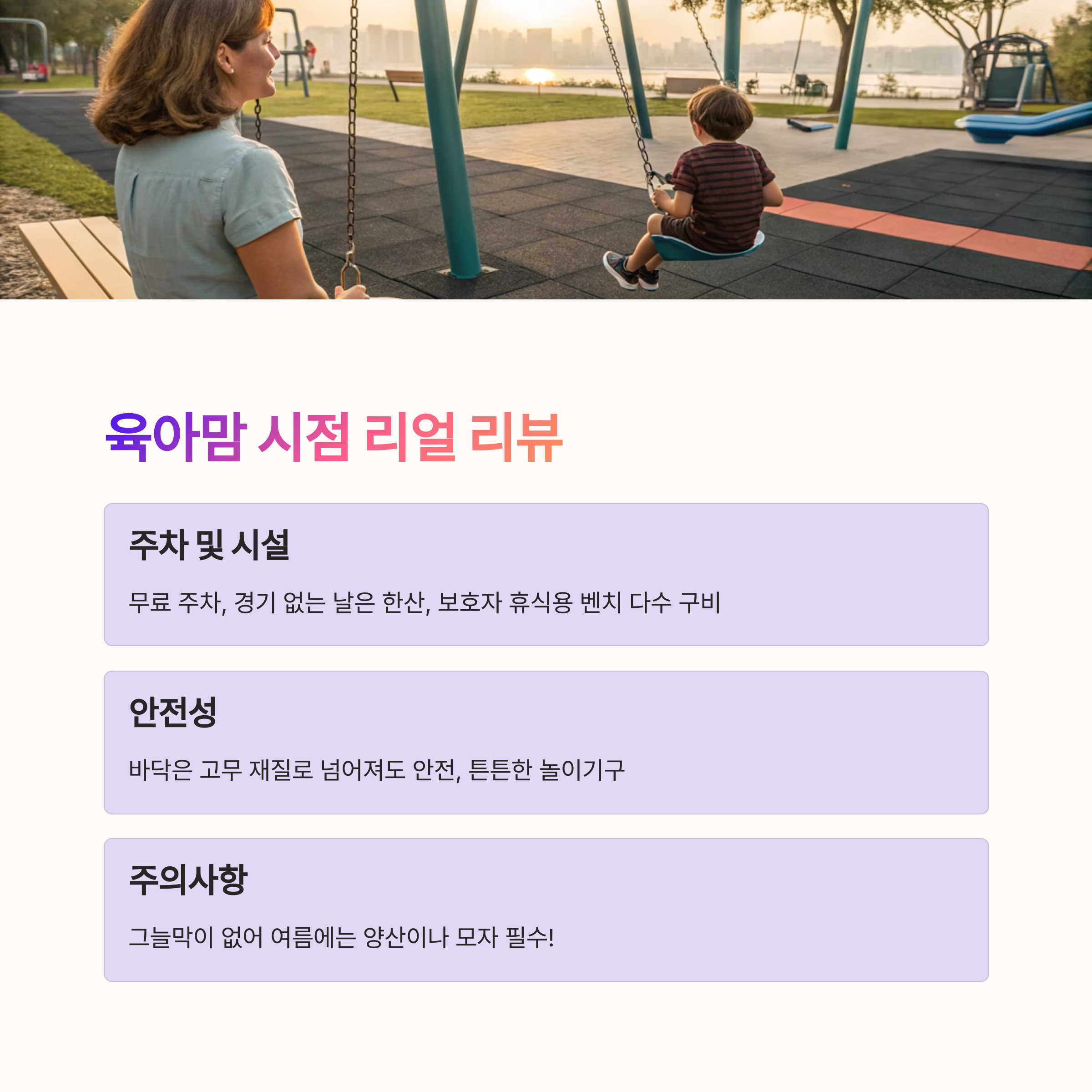 - "도심 근처에서 멀지 않은 안전 놀이터 찾는 분"
