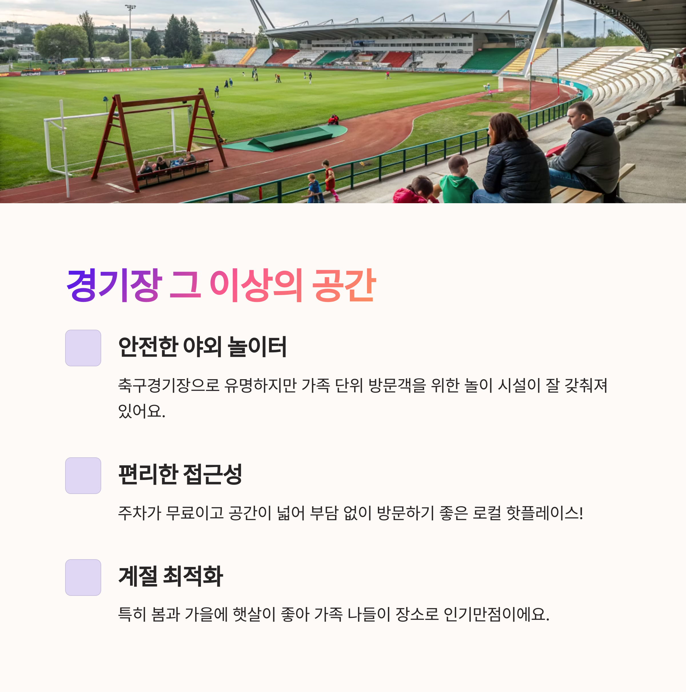 안전하고 넓은 공간 덕분에 주말 가족 나들이 장소로 인기 만점이죠.