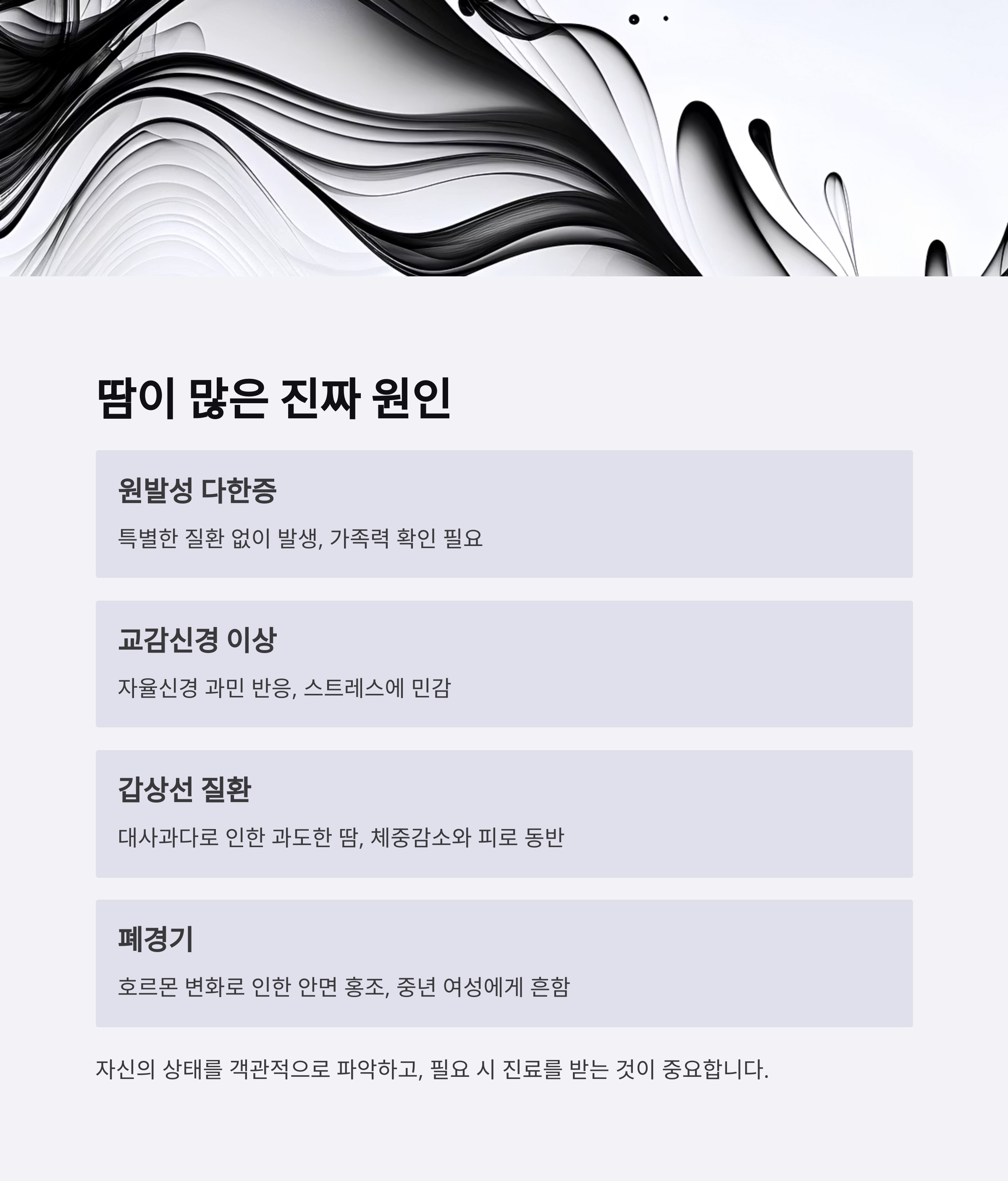 다한증은 흔히 체질이라고 생각되지만, 다양한 원인이 복합적으로 작용합니다.
