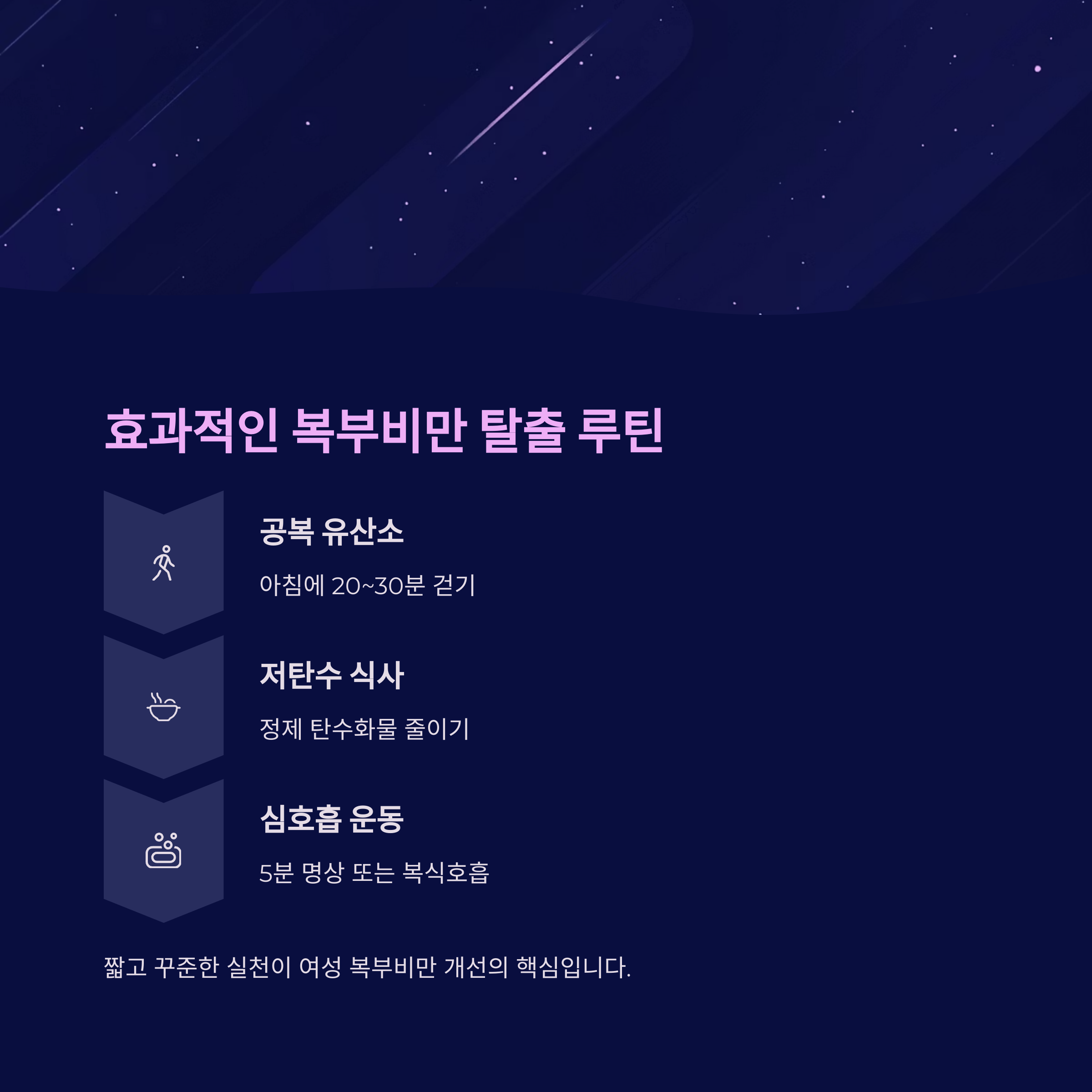 짧고 꾸준한 실천이 여성 복부비만 개선의 핵심입니다.