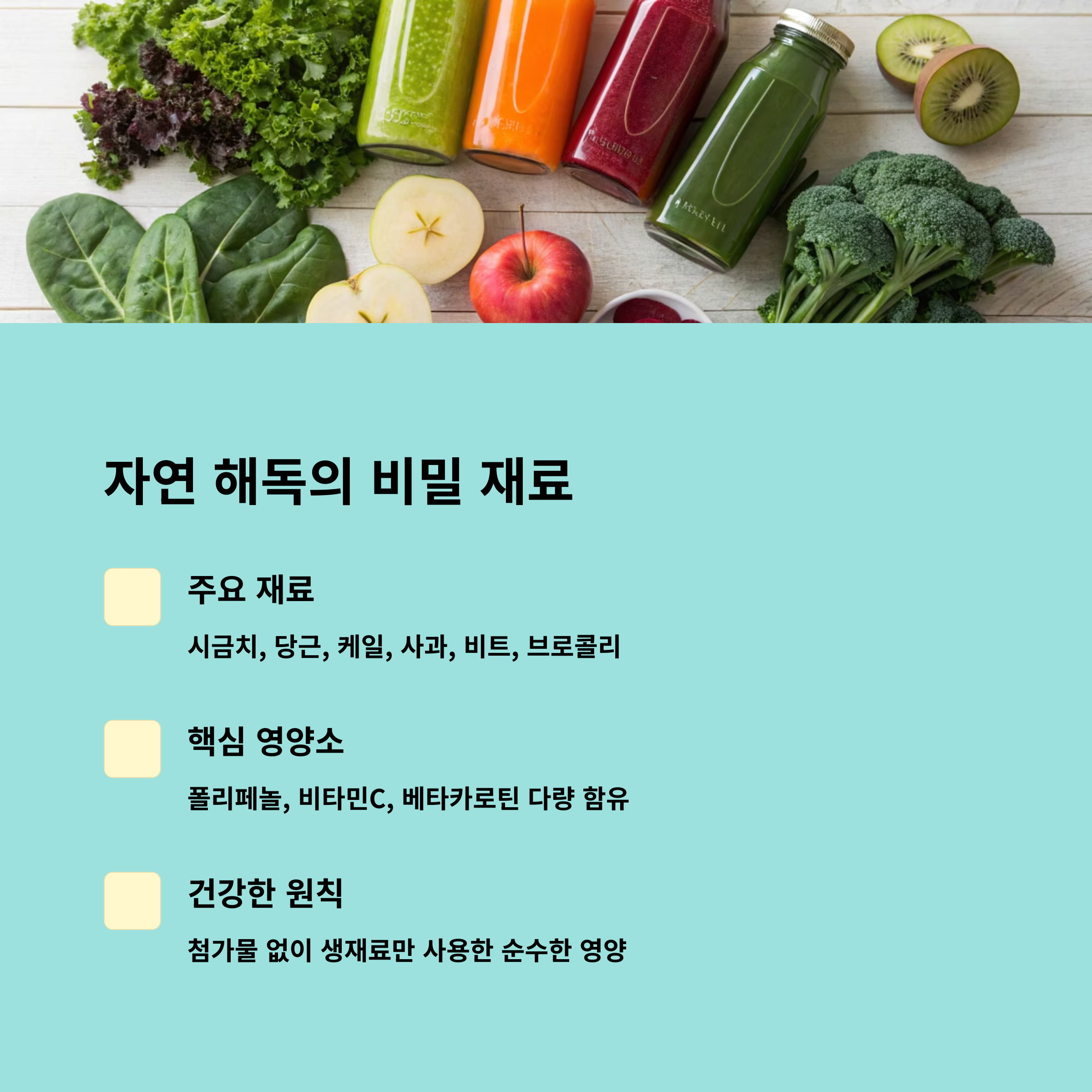 "클렌즈주스는 시작일 뿐, 꾸준함이 답이다"는 점 잊지 마세요!