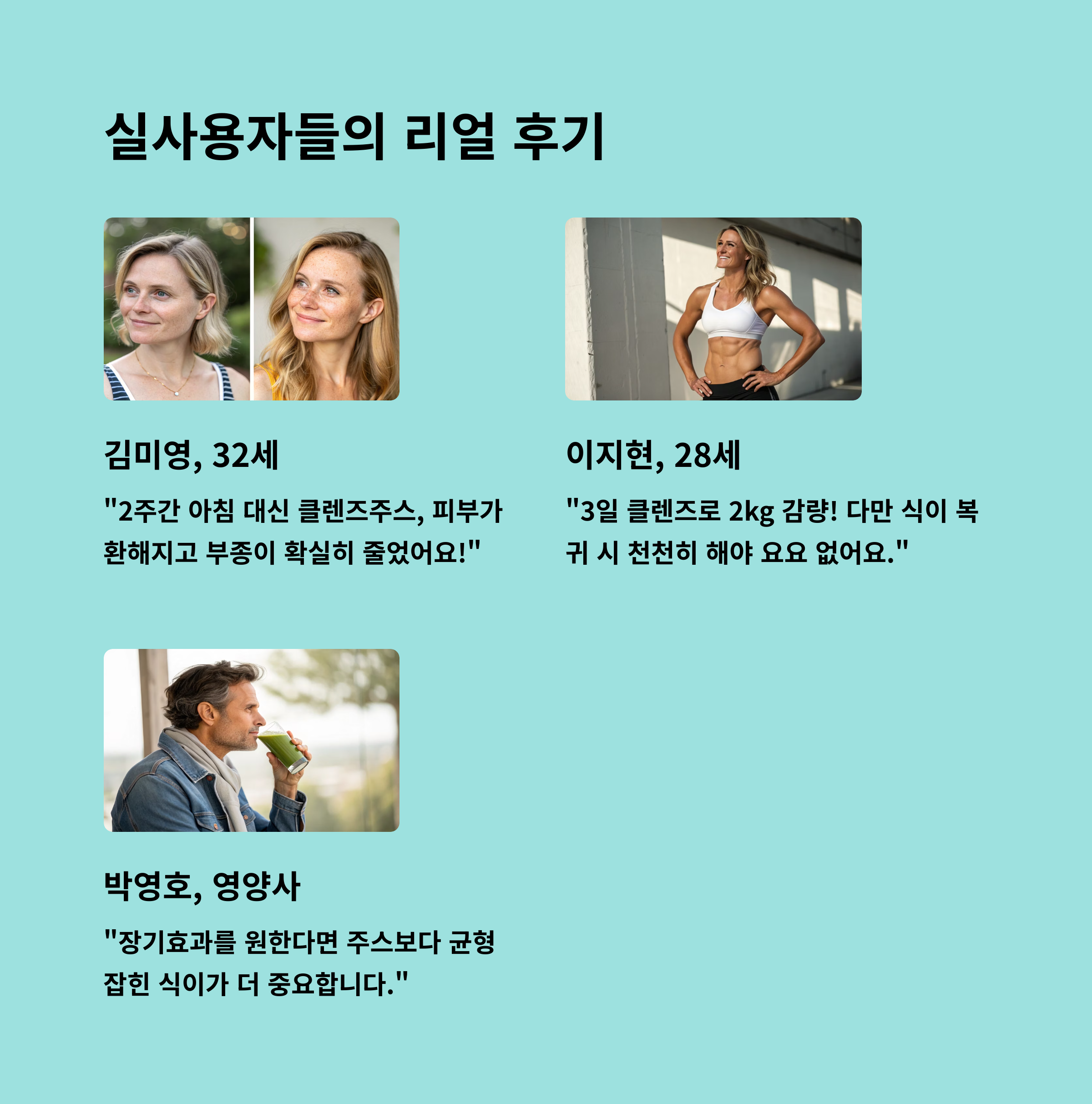 생생한 후기들이 클렌즈주스의 매력을 더욱 증명해줍니다. 💬