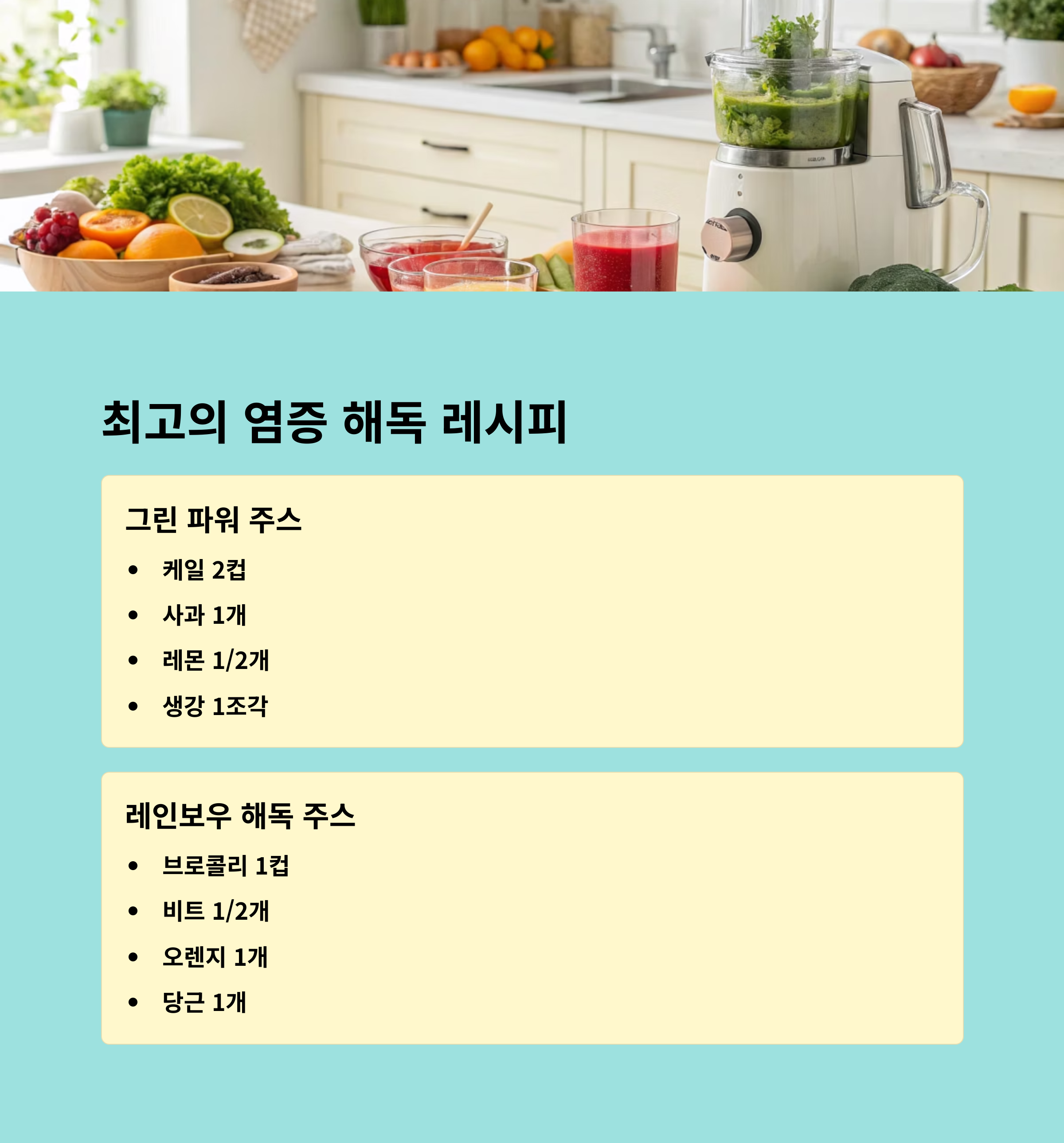 여기에 사과, 레몬, 생강 등을 추가하면 맛도 좋아지고