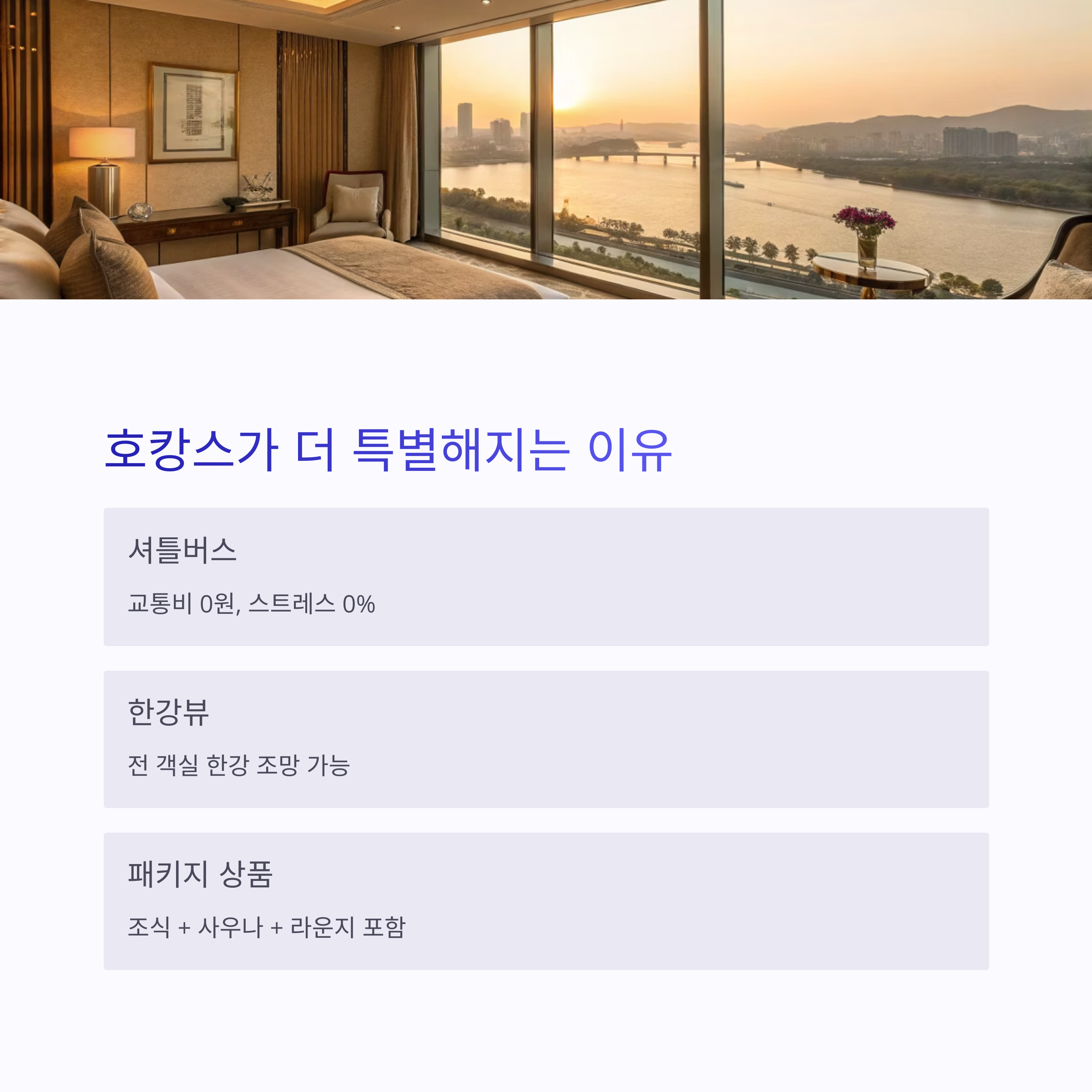 호캉스가 더 특별해지는 이유? 셔틀 + 뷰 + 패키지의 시너지