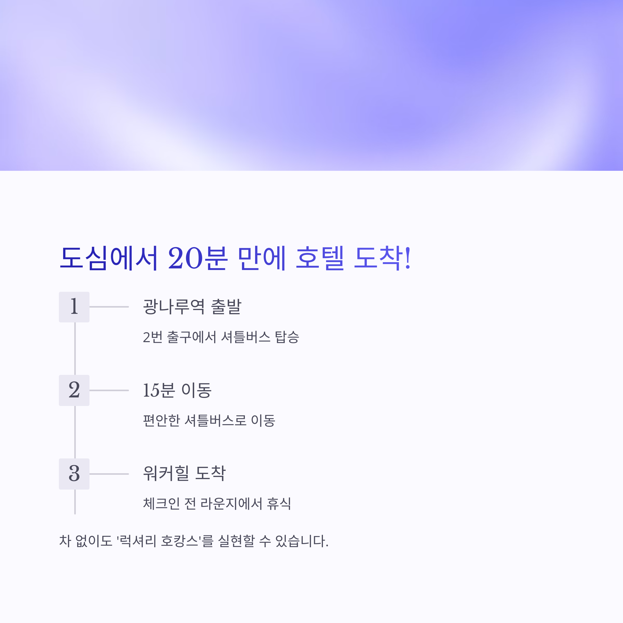 워커힐 셔틀은 자동차 없이도 ‘럭셔리 호캉스’를 실현하게 합니다.