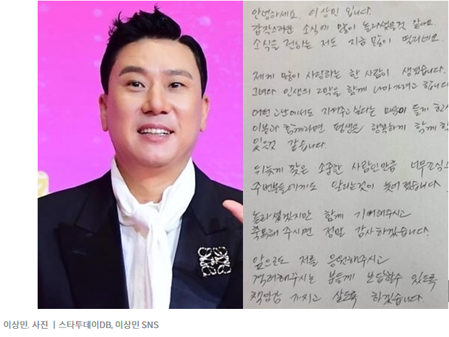 2025년 4월, 이상민은 자신의 SNS를 통해 결혼 소식을 전했습니다.