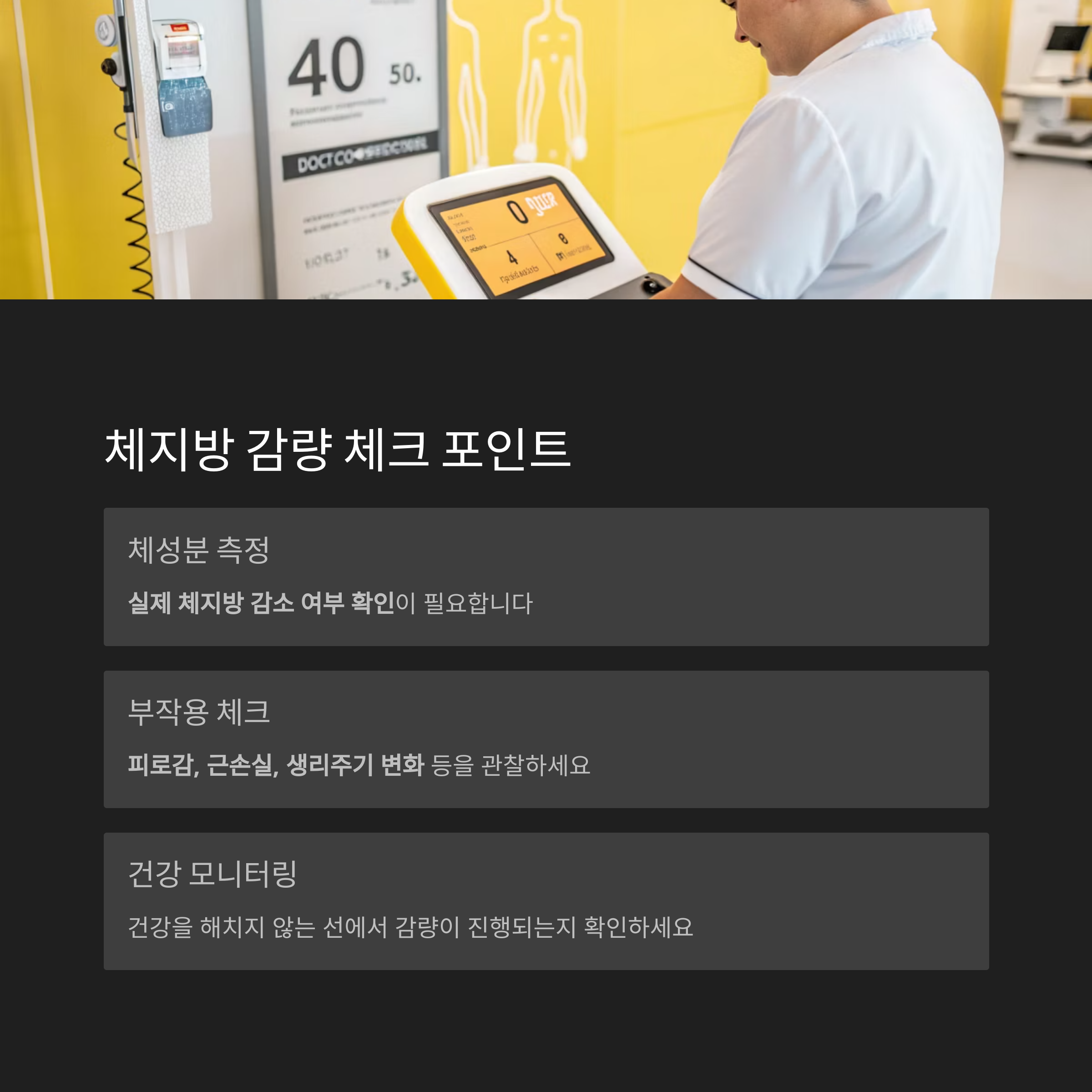 체성분 측정을 통해 실제 체지방 감소 여부 확인이 필요합니다.