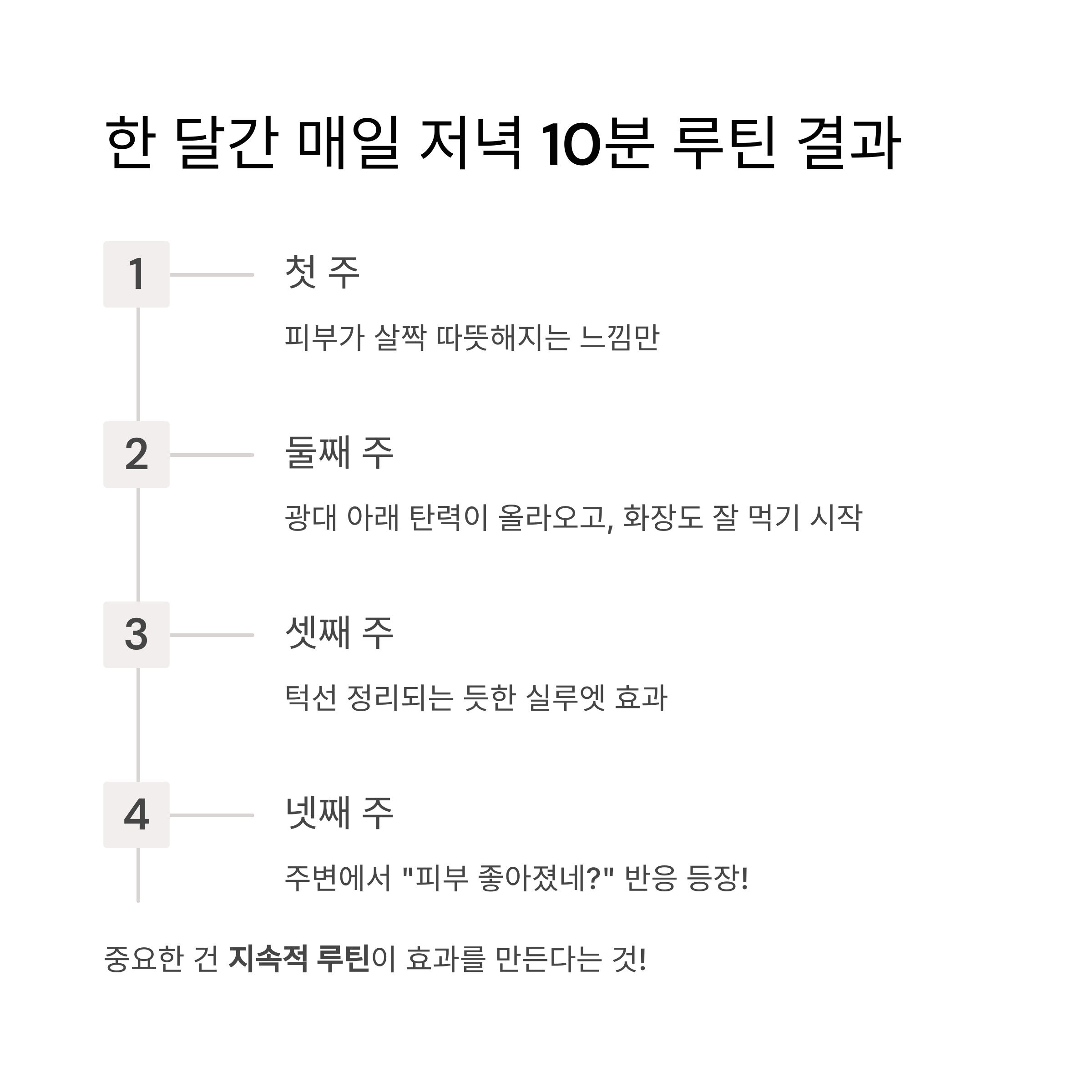 • 넷째 주: 주변에서 “피부 좋아졌네?” 반응 등장!