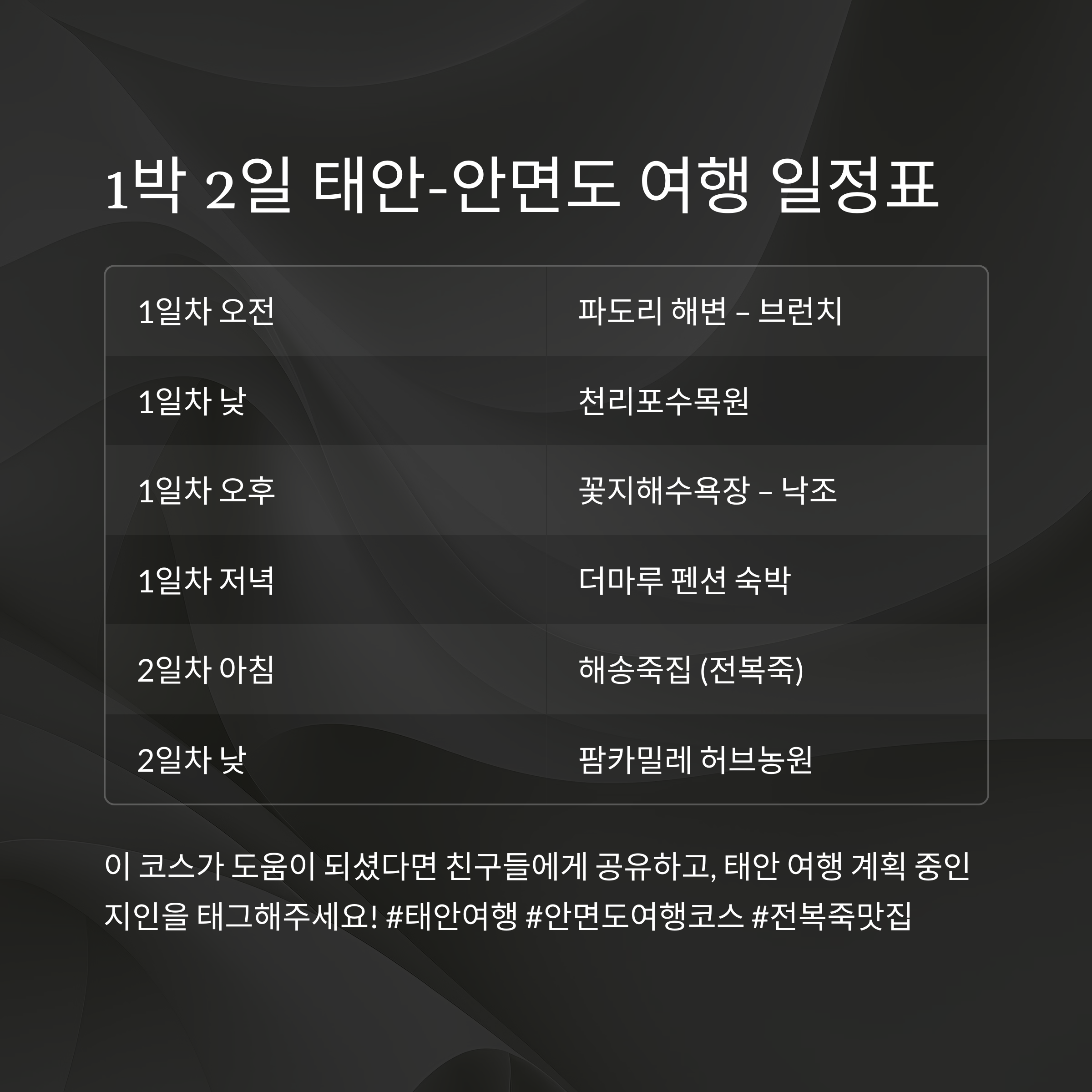 8. 여행 일정표 요약 (1박 2일 루트 한눈에 보기)