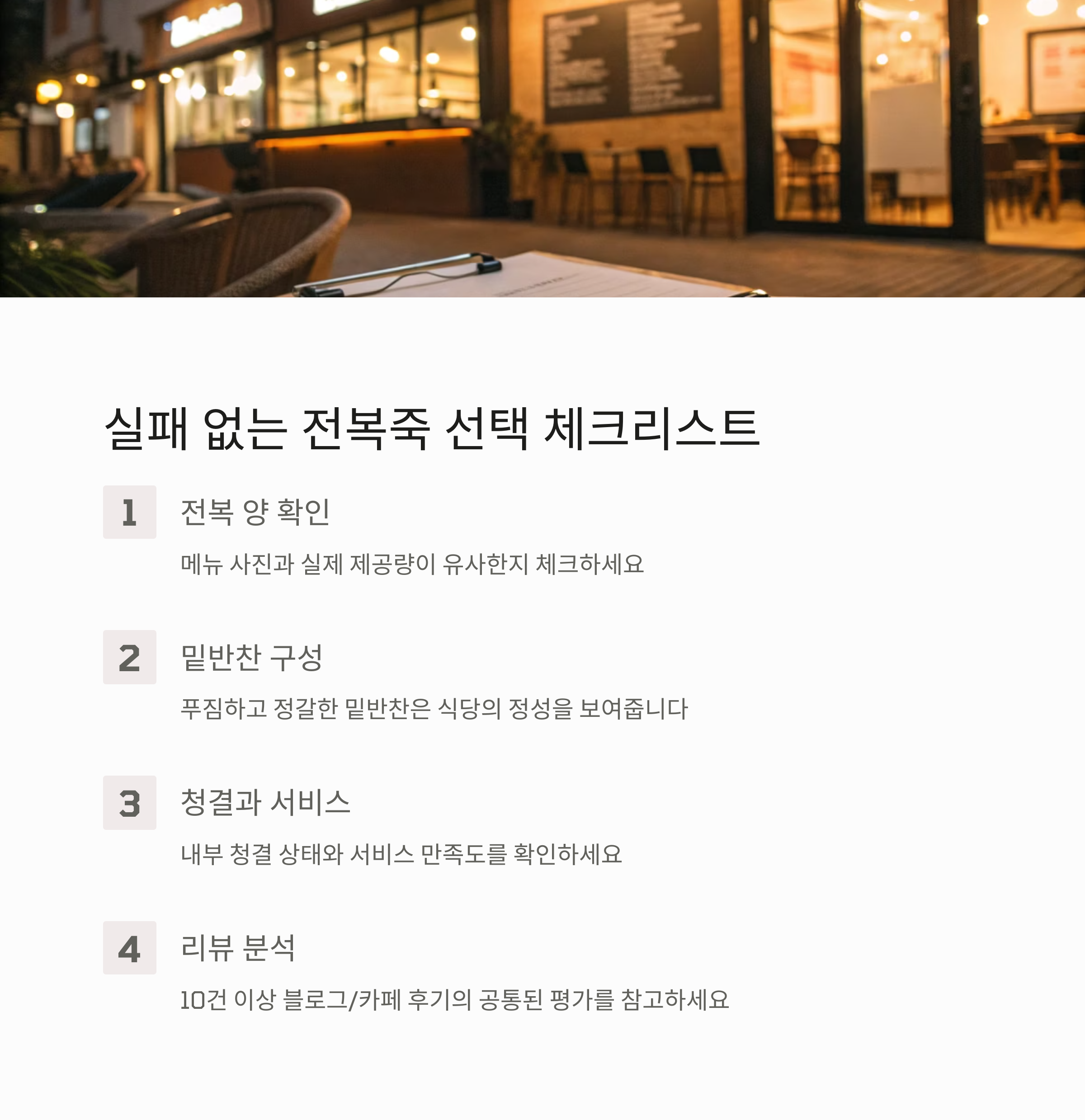 전복죽집 선택 시 고려해야 할 체크리스트: