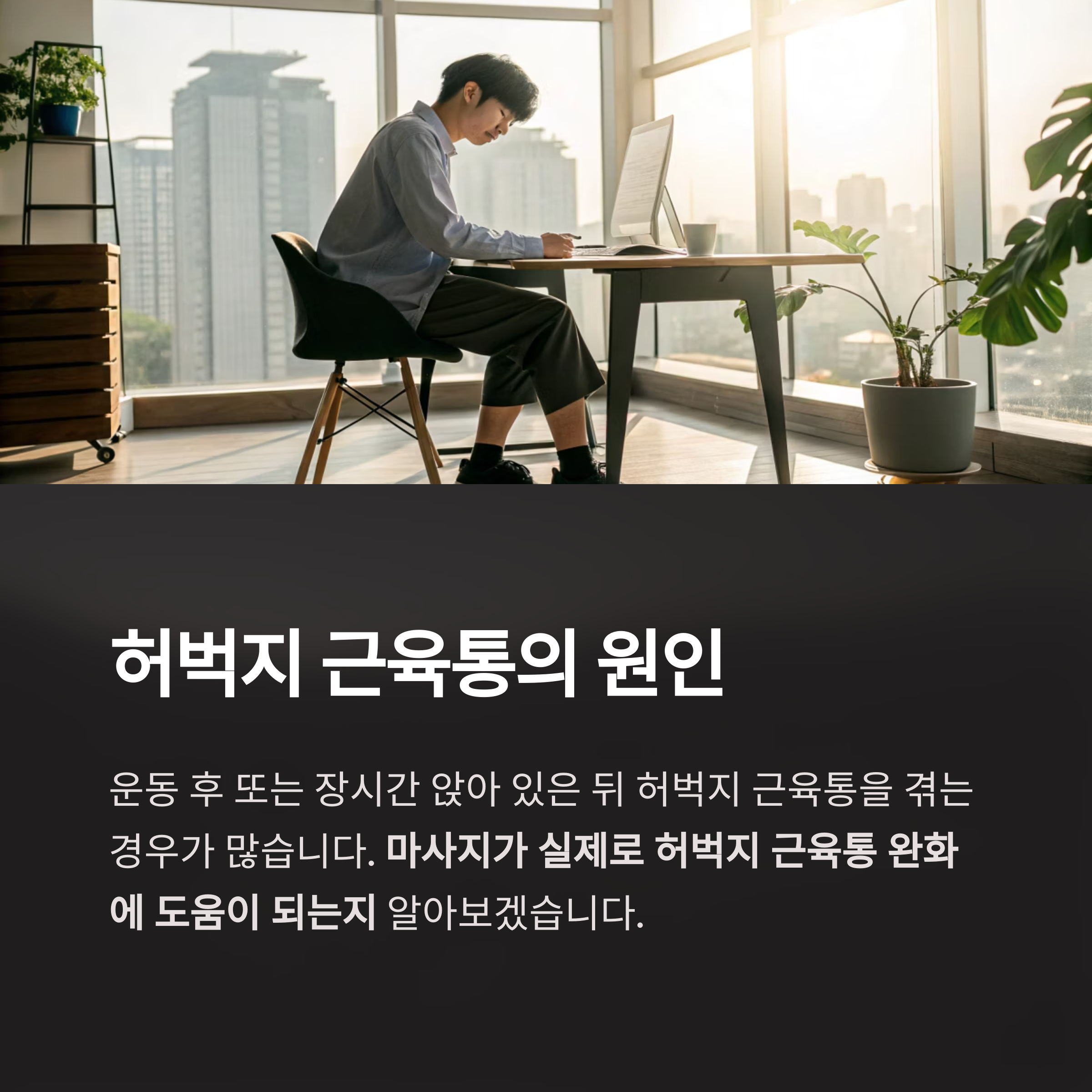 운동 후 또는 장시간 앉아 있은 뒤 허벅지 근육통을 겪는 경우가 많습니다.